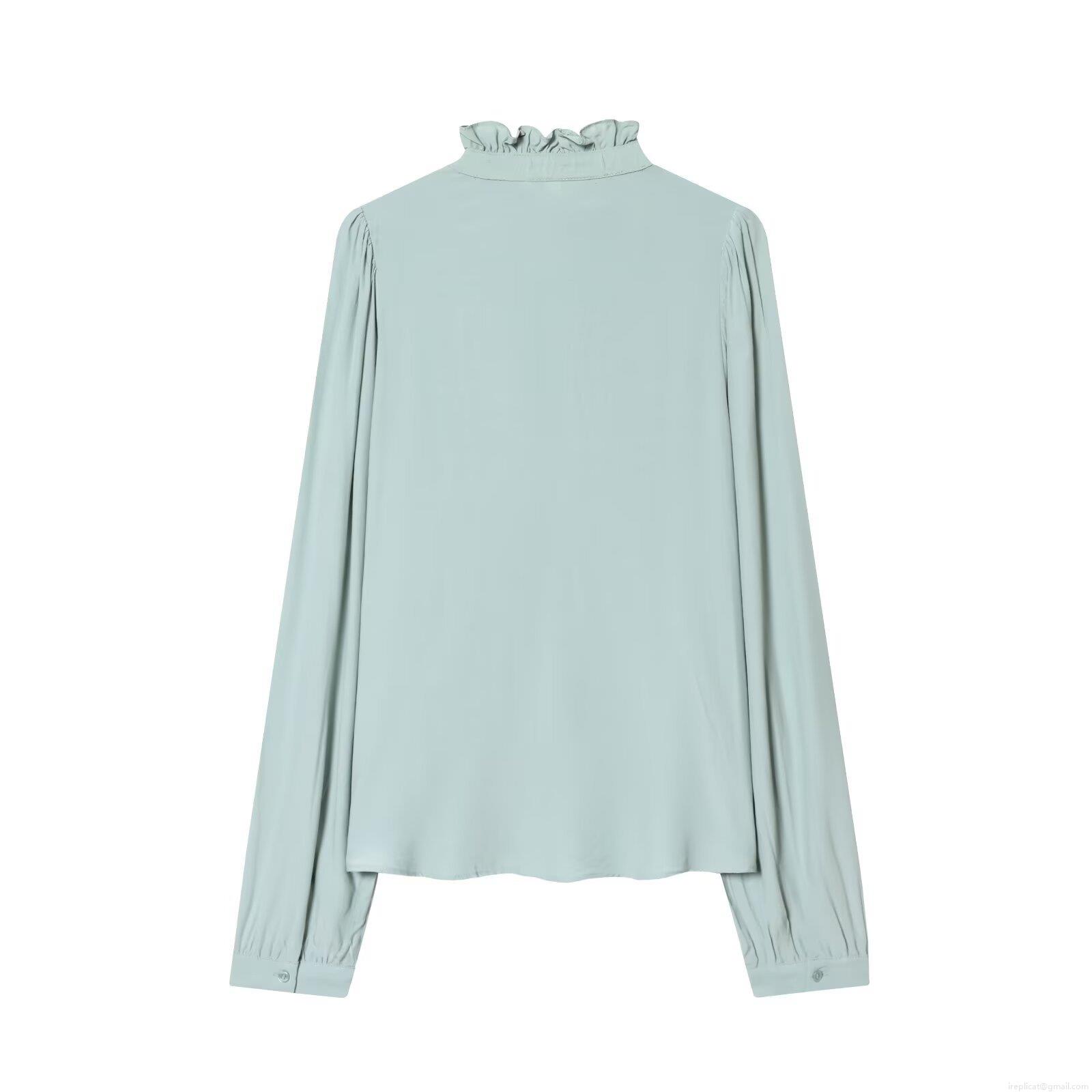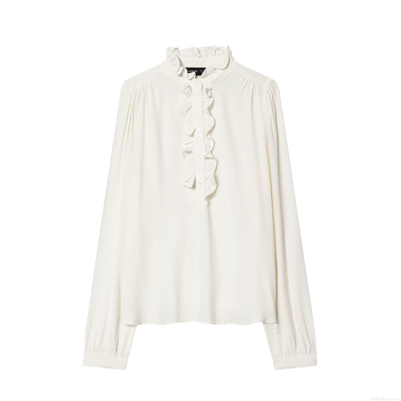 • Women's Elegant Ruffle Collar Long Sleeve Polyester Blouse Sweet Solid Color Pleated Chiffon Texture Shirt For Office Daily Lady Style