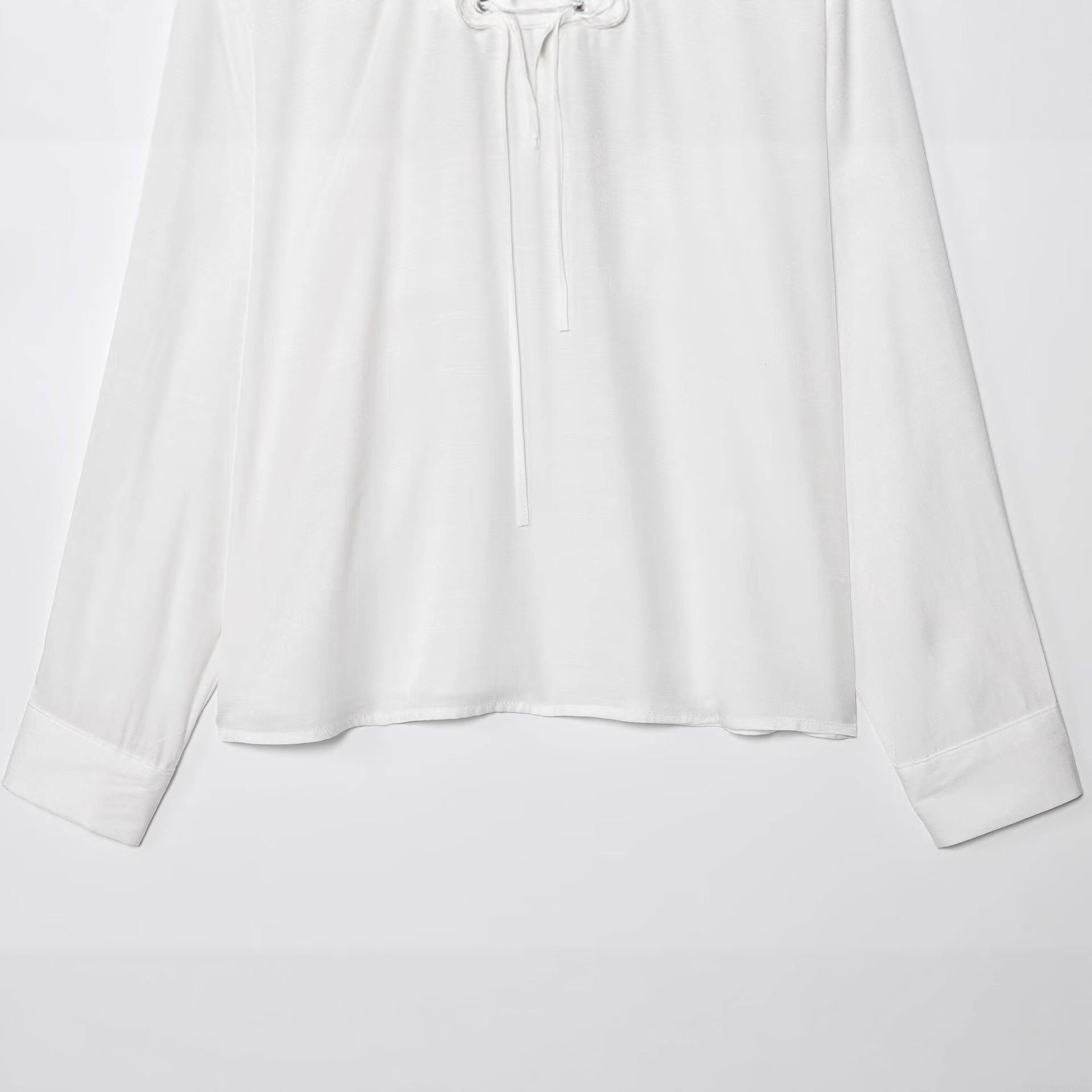 • Women's Elegant Ruffle Tie-Neck Blouse Long Sleeve Slub Cotton Polyester Shirt Solid Color V-Neck Slimming Pullover Top For Casual Party Office