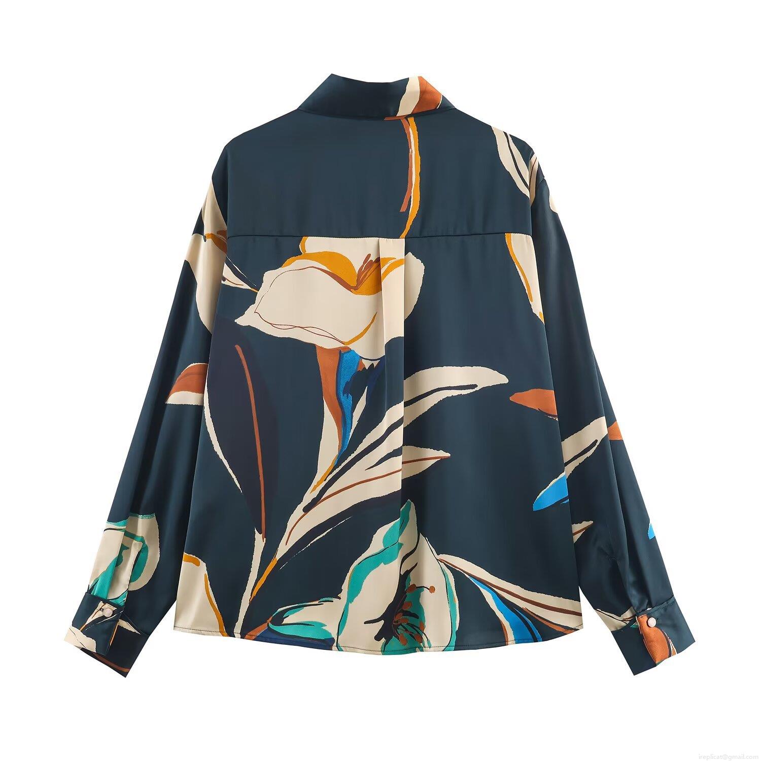 • Women's Elegant Satin Abstract Floral Print Long Sleeve Blouse Turn-down Collar Office Lady Button Down Shirt Tops For Party Meeting Daily Wear