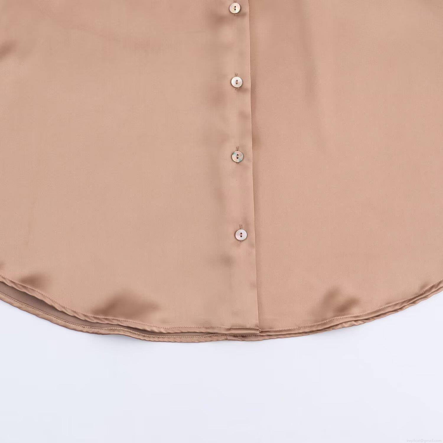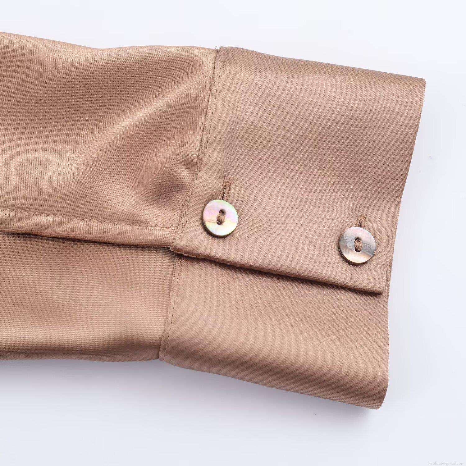 Solid Color, Satin Texture, Drop Shoulder Design, Shell-colored Buttons