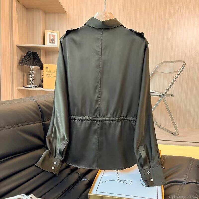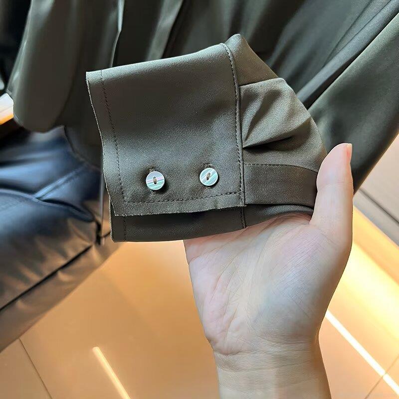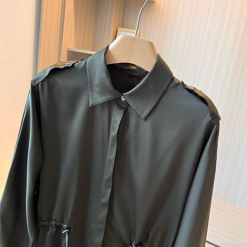 • Women's Elegant Satin Long Sleeve Blouse Drawstring Waist Shirt With Epaulettes Solid Color Viscose Blend Office Commuter Top
