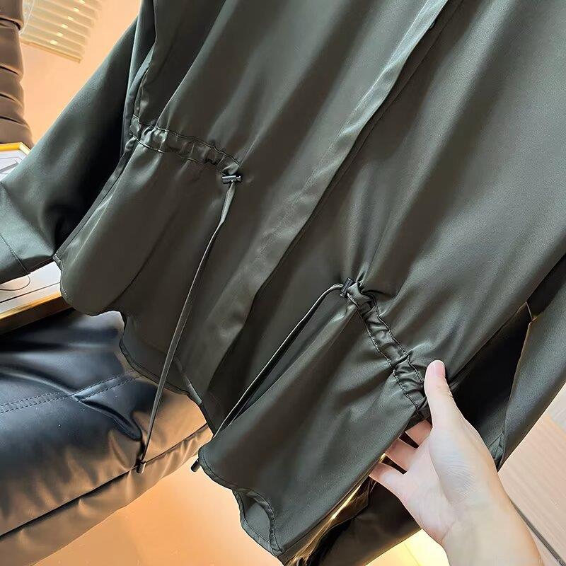 Solid Color, Satin Texture, Drawstring Waist, Epaulette Design, Shell Buckle
