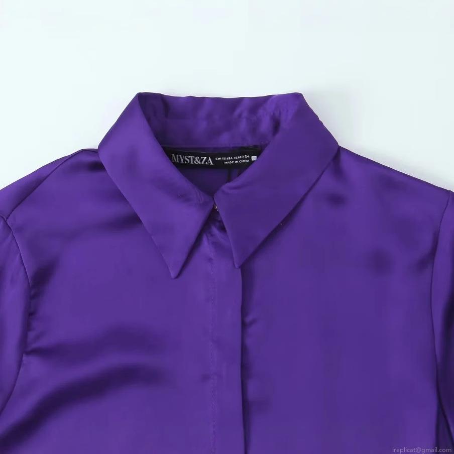 • Women's Elegant Satin Long Sleeve Blouse Waist Tie Drawstring Shirt Solid Color Button Down Top For Office Daily Casual Party Fashionable Ladies Apparel