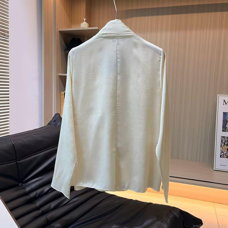• Women's Elegant Satin Long Sleeve Blouse With Bow Tie V Neck Loose Fit Jacquard Solid Color Pullover Shirt For Office Daily Casual Wear Fall