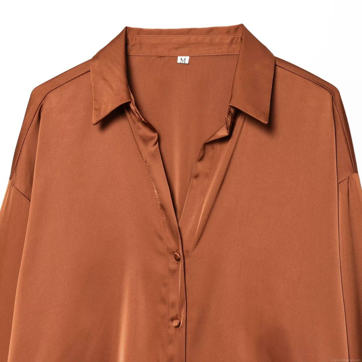 • Women's Elegant Satin Long Sleeve Blouse With Feather Trim Cuffs Solid Color Button Down Shirt Collar Party Evening Fashion Casual Top