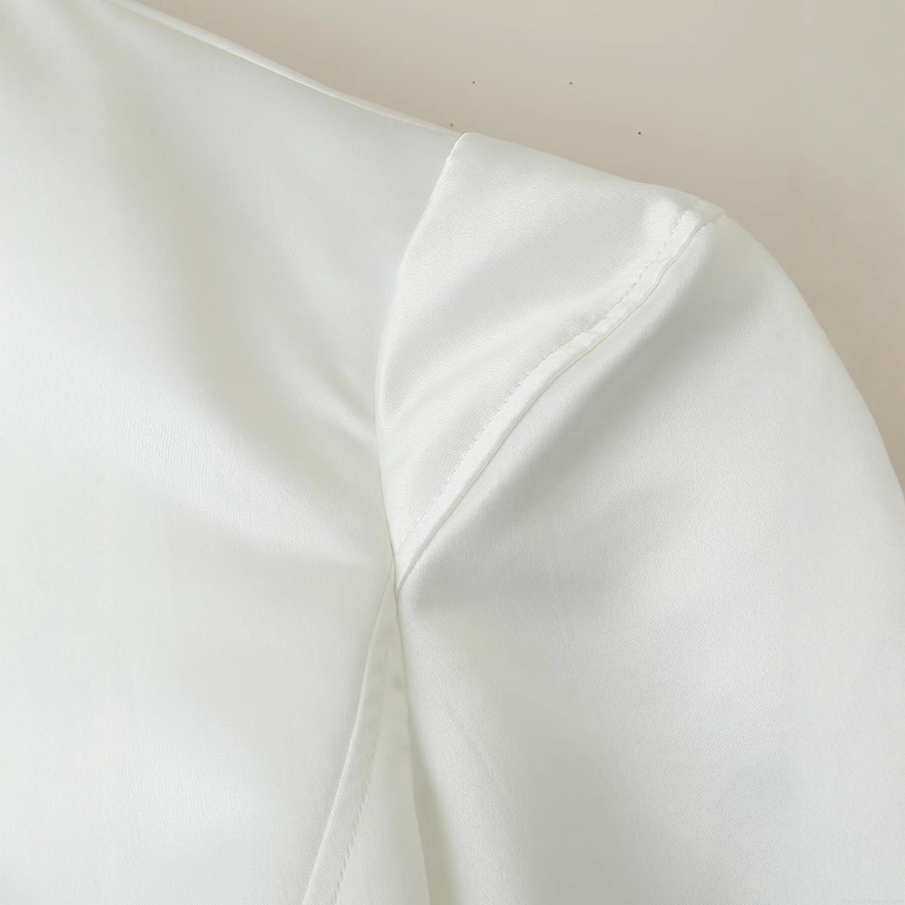 • Women's Elegant Satin V Neck Blouse Long Sleeve Button Up Shirt Top Solid Color Autumn Fashion Streetwear For Women