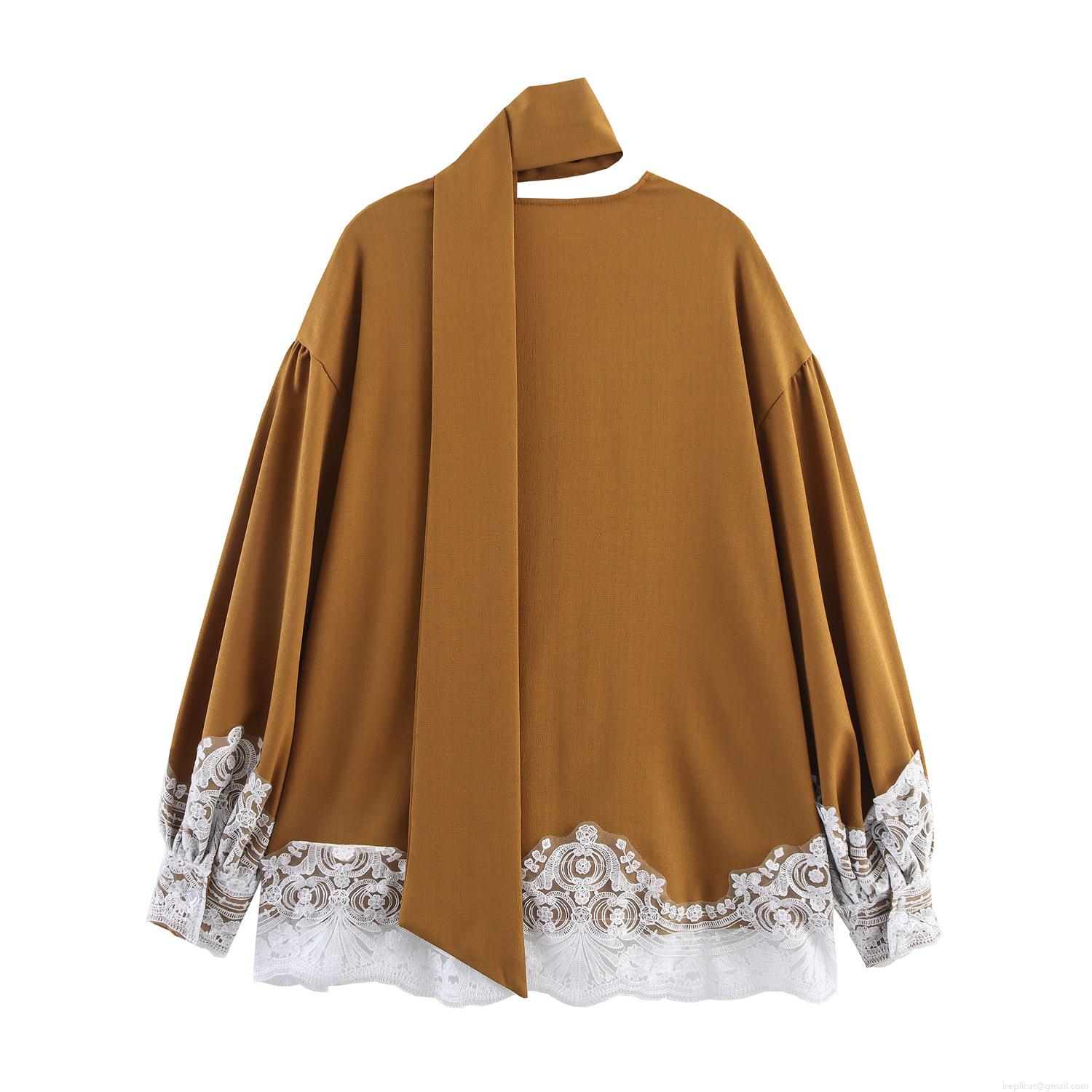 • Women's Elegant Scarf Neck Blouse Vintage Lace Patchwork Long Sleeve Top Casual Loose Tie Front Polyester Shirt For Ladies Office Party