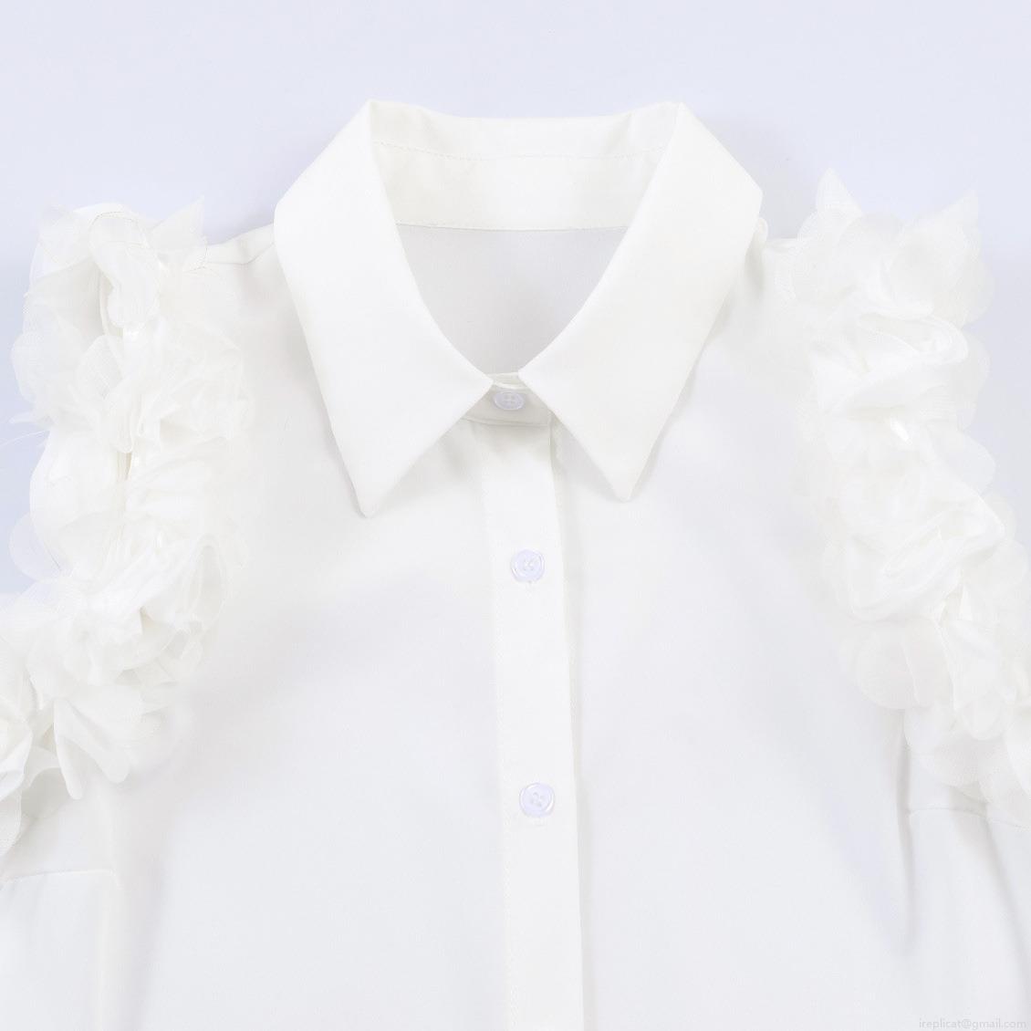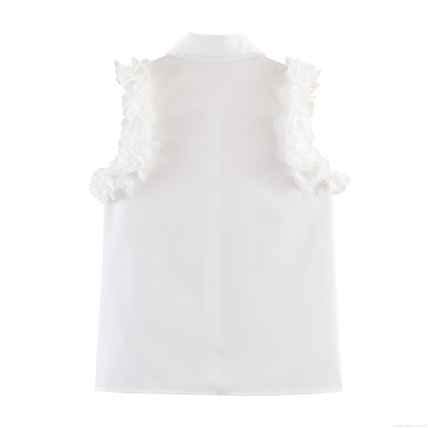 • Women's Elegant Sleeveless Blouse Polyester Lapel Collar Ruffle Trim 3D Flower Button Down Solid Color Sweet Shirt For Women