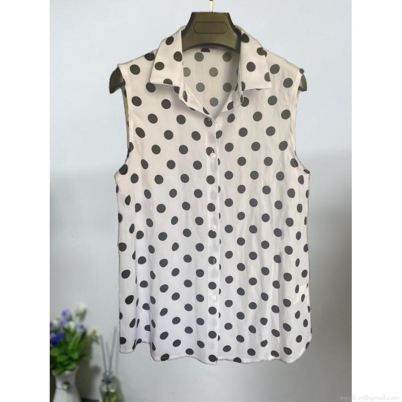• Women's Elegant Sleeveless Polka Dot Blouse Fashion Lapel Button Down Satin Chiffon Top For Summer Office Commuter Casual Lady