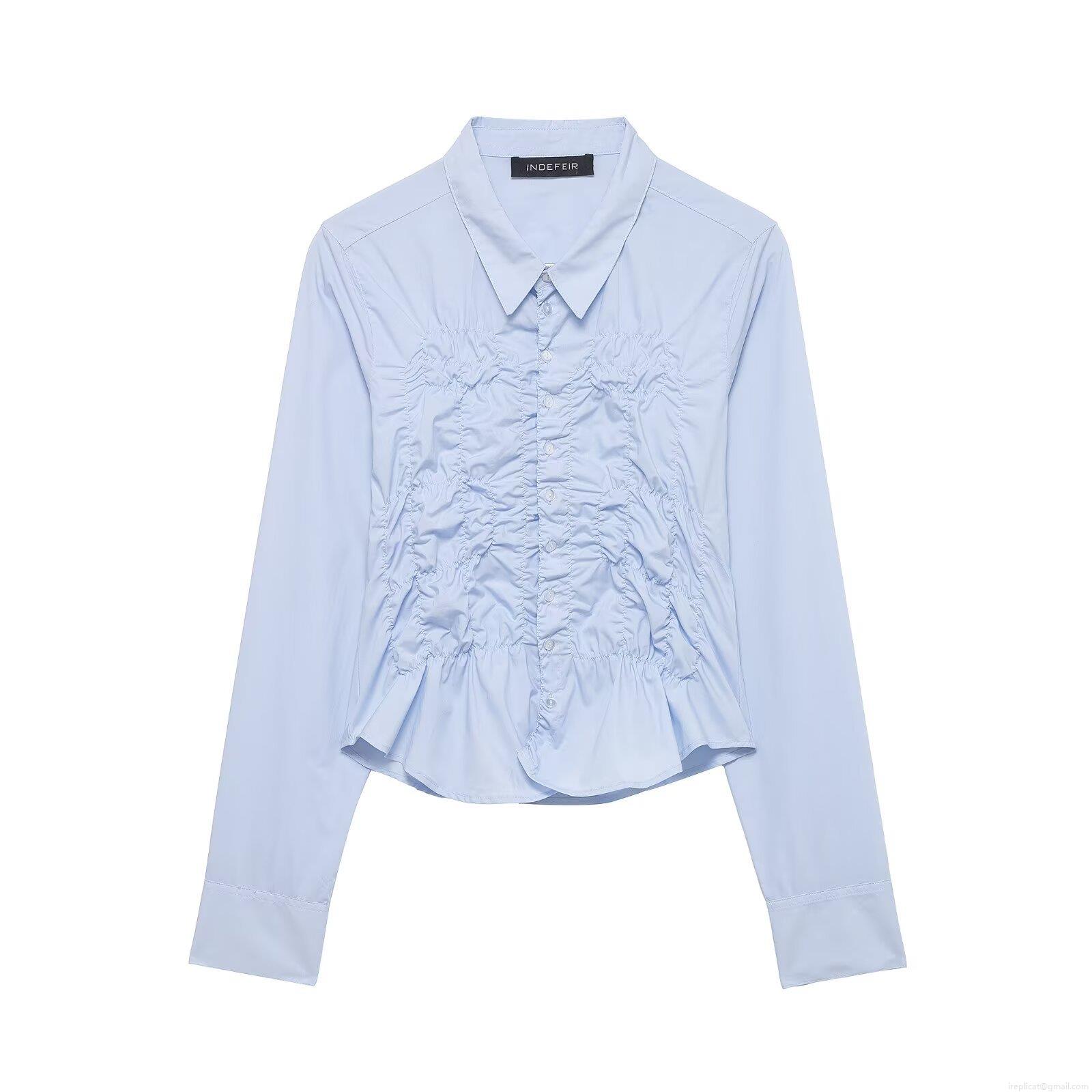 • Women's Elegant Smocked Front Long Sleeve Blouse Solid Color Button Down Polyester Shirt Casual Slim Fit Office Streetwear Top