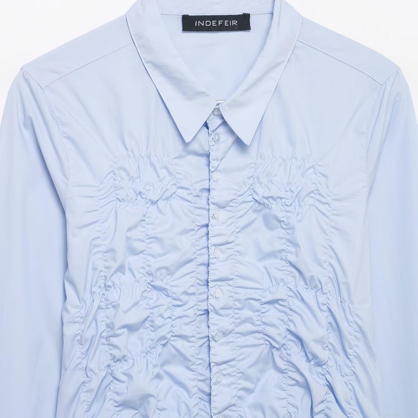 Women's Elegant Smocked Front Long Sleeve Blouse Solid Color Button Down Polyester Shirt Casual Slim Fit Office Streetwear Top