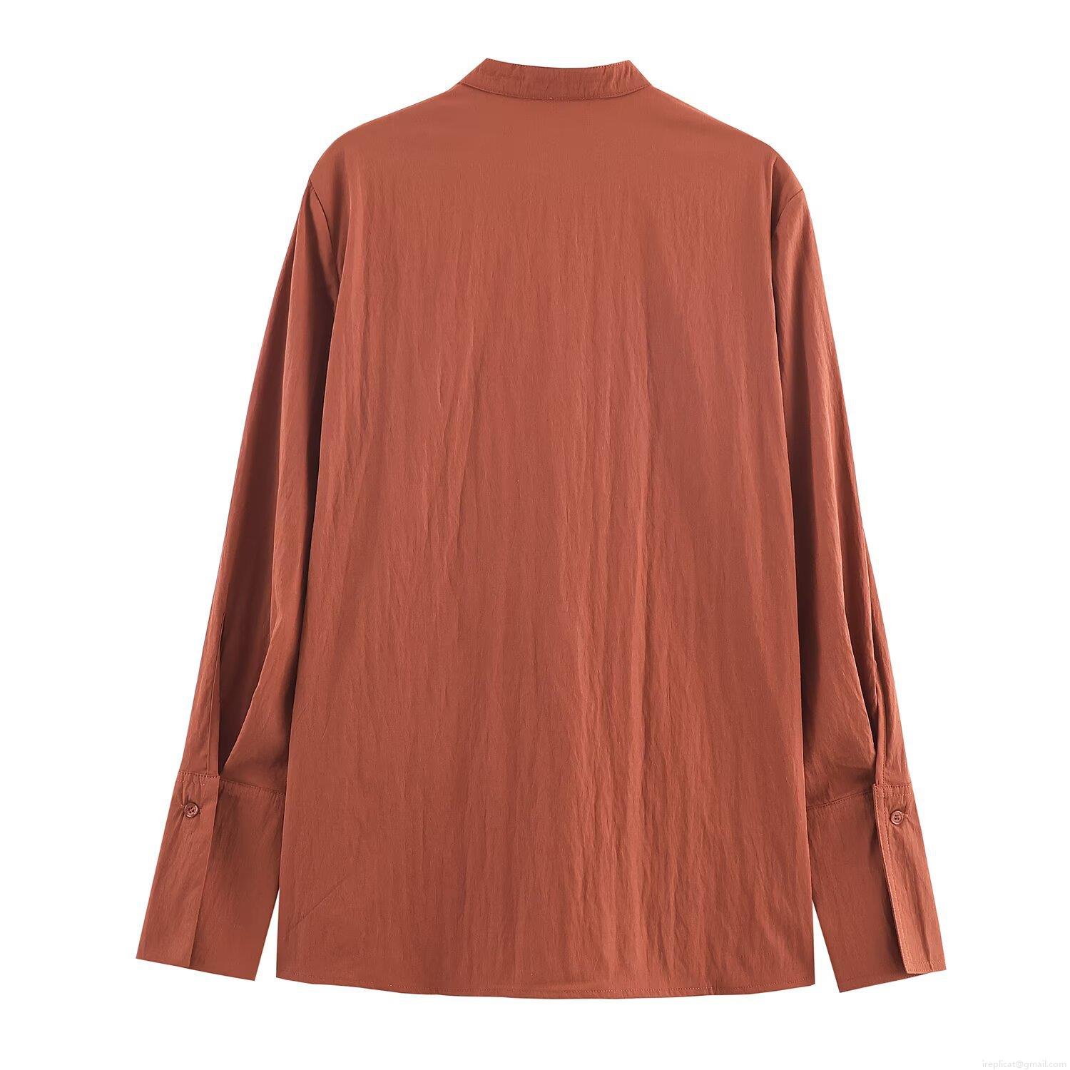 • Women's Elegant Solid Color Long Sleeve Blouse Casual Lapel Button Up Shirt Lightweight Breathable Textured Polyester Top For Office Work Daily Wear