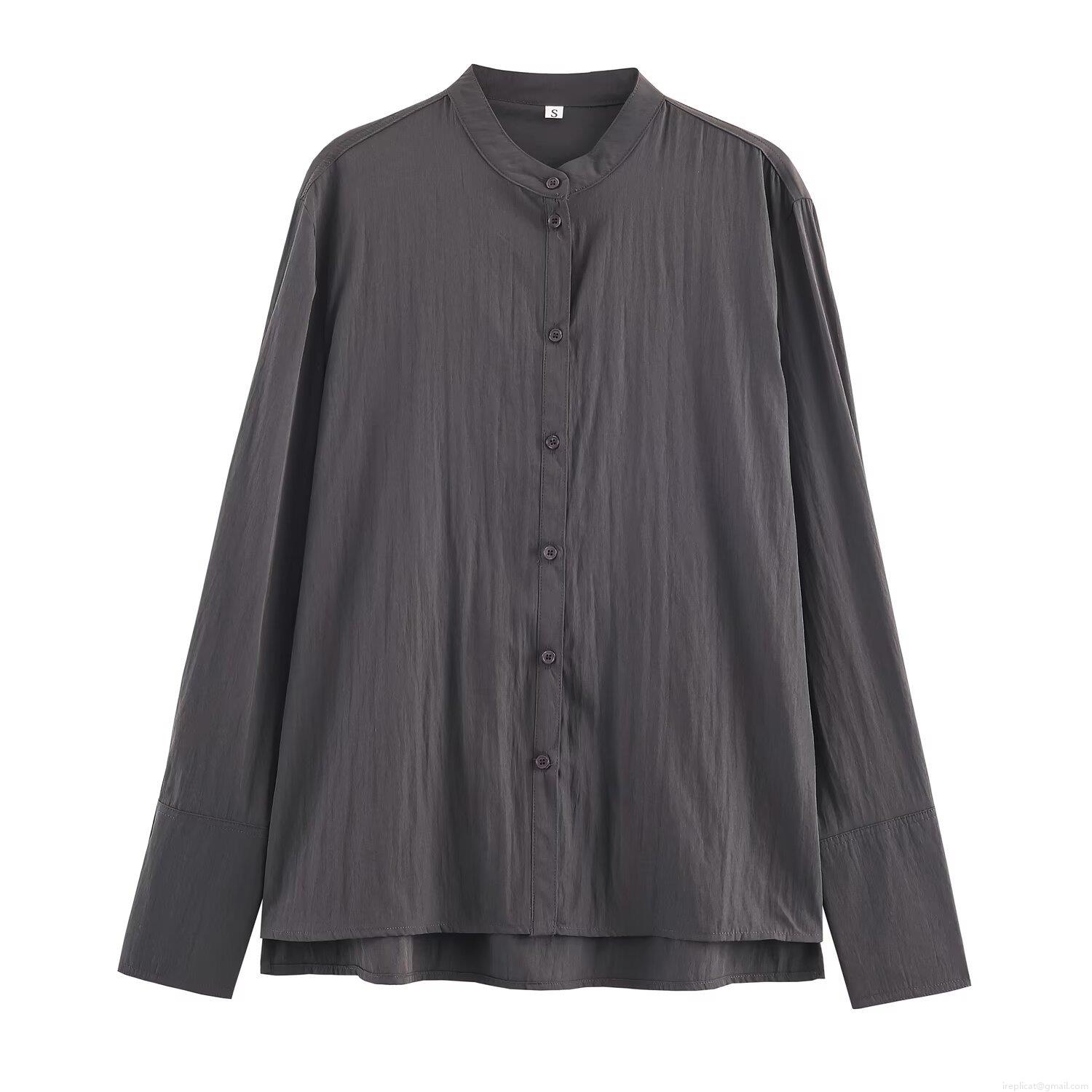 Solid Color, Stand-up Collar Design, Single Row With Multiple Deductions, Wrinkled Fabric