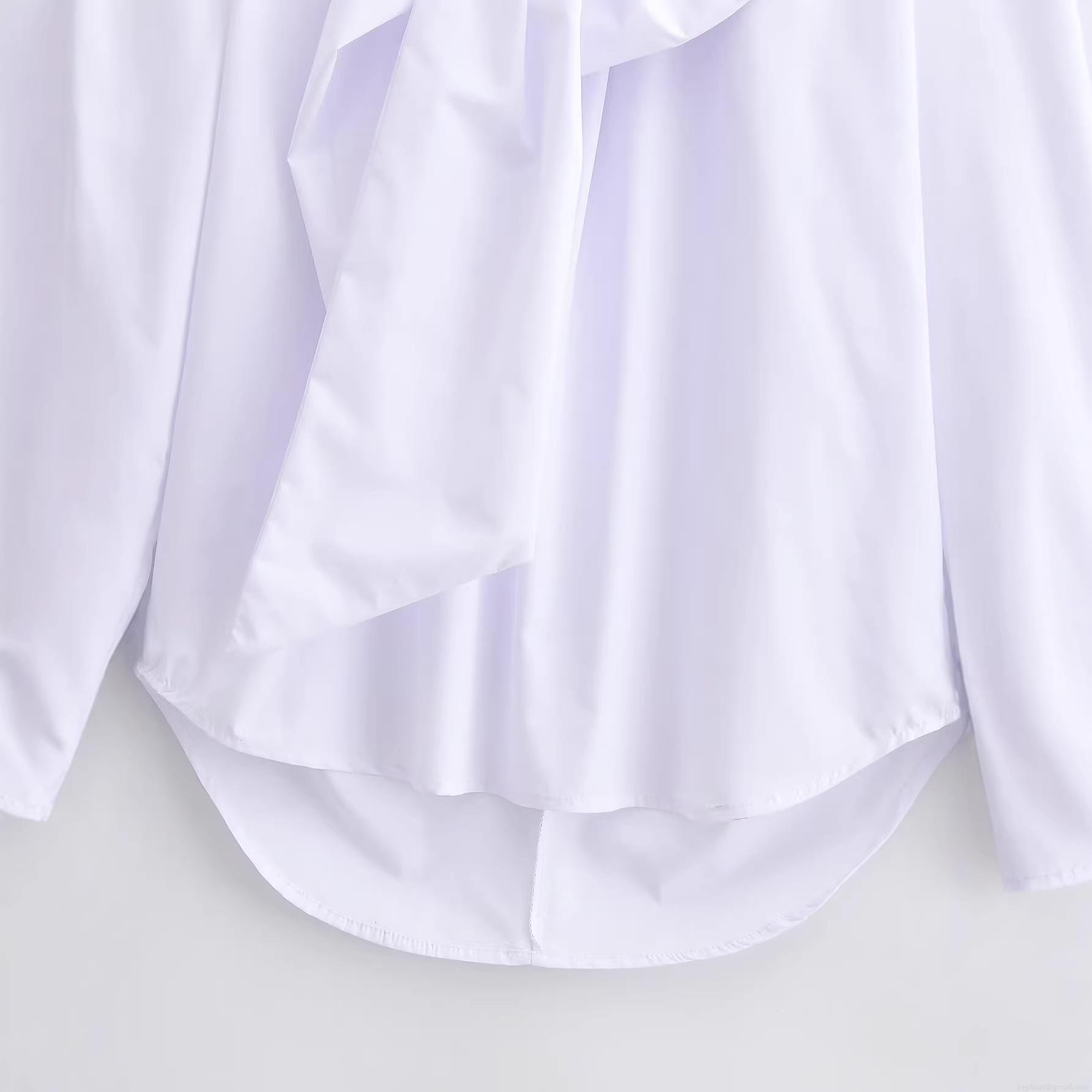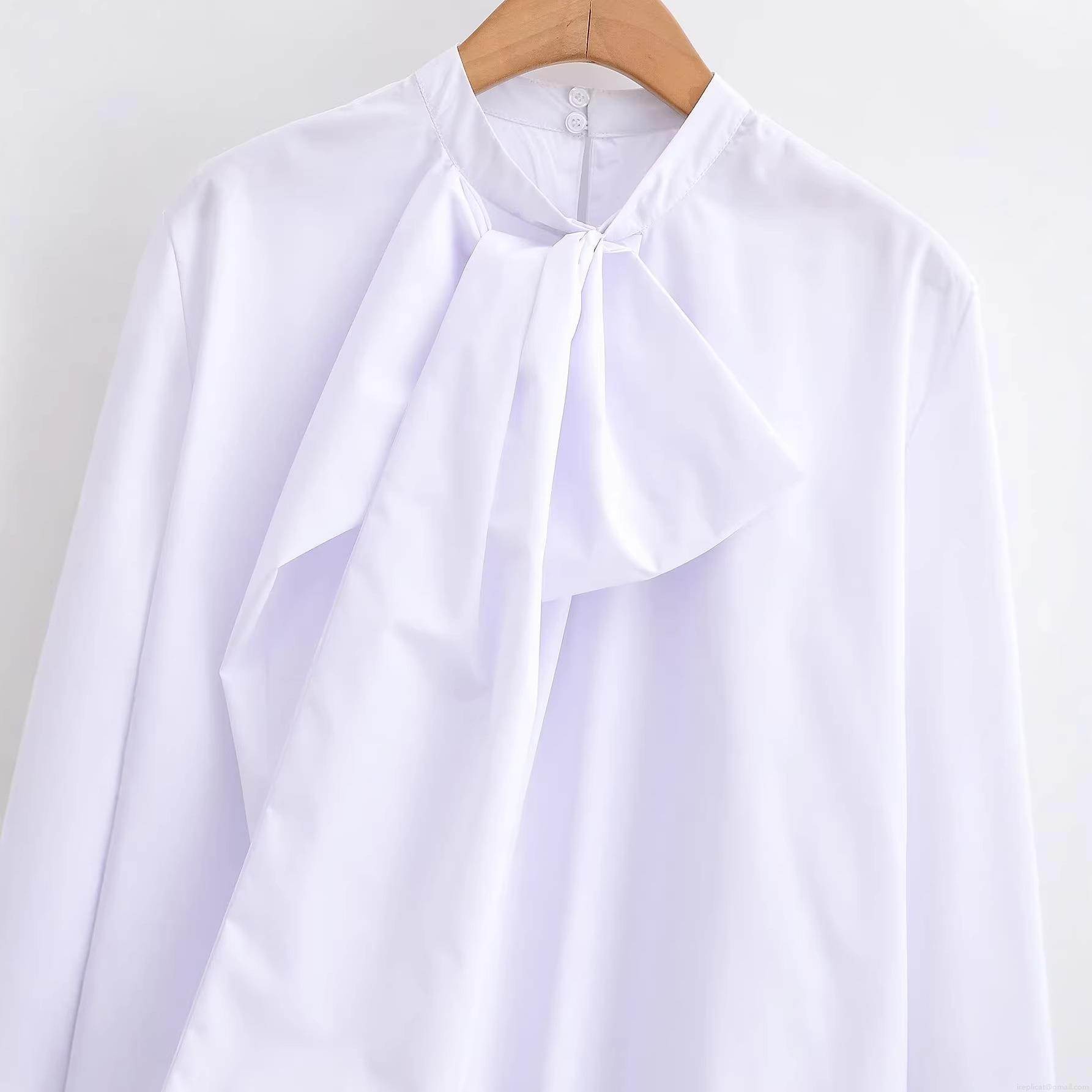 • Women's Elegant Solid Color Long Sleeve Blouse With Large Bow Tie Stand Collar 100% Polyester Casual Office Work Shirt For Ladies