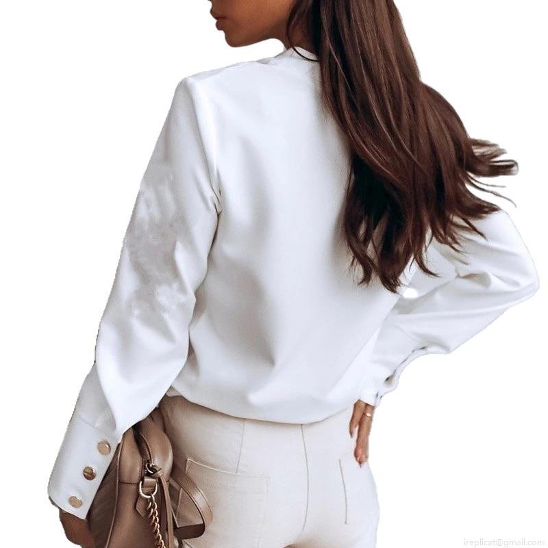 • Women's Elegant Stand Collar Long Sleeve Shirt Solid Color Metal Button Blouse For Office Commuter Minimalist Silk-like Polyester Blend Top