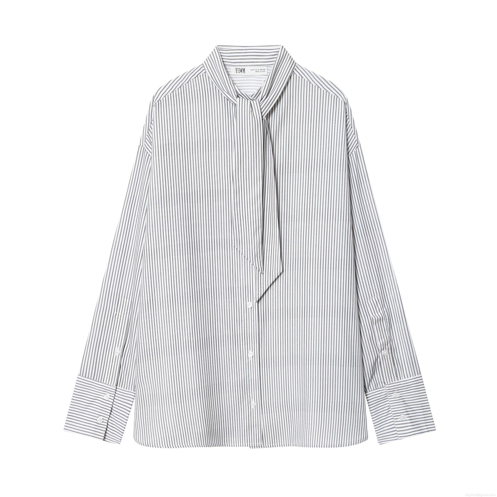 • Women's Elegant Striped Long Sleeve Scarf Tie Shirt Office Commute Sophisticated Polyester Cotton Blend Button Down Blouse Top