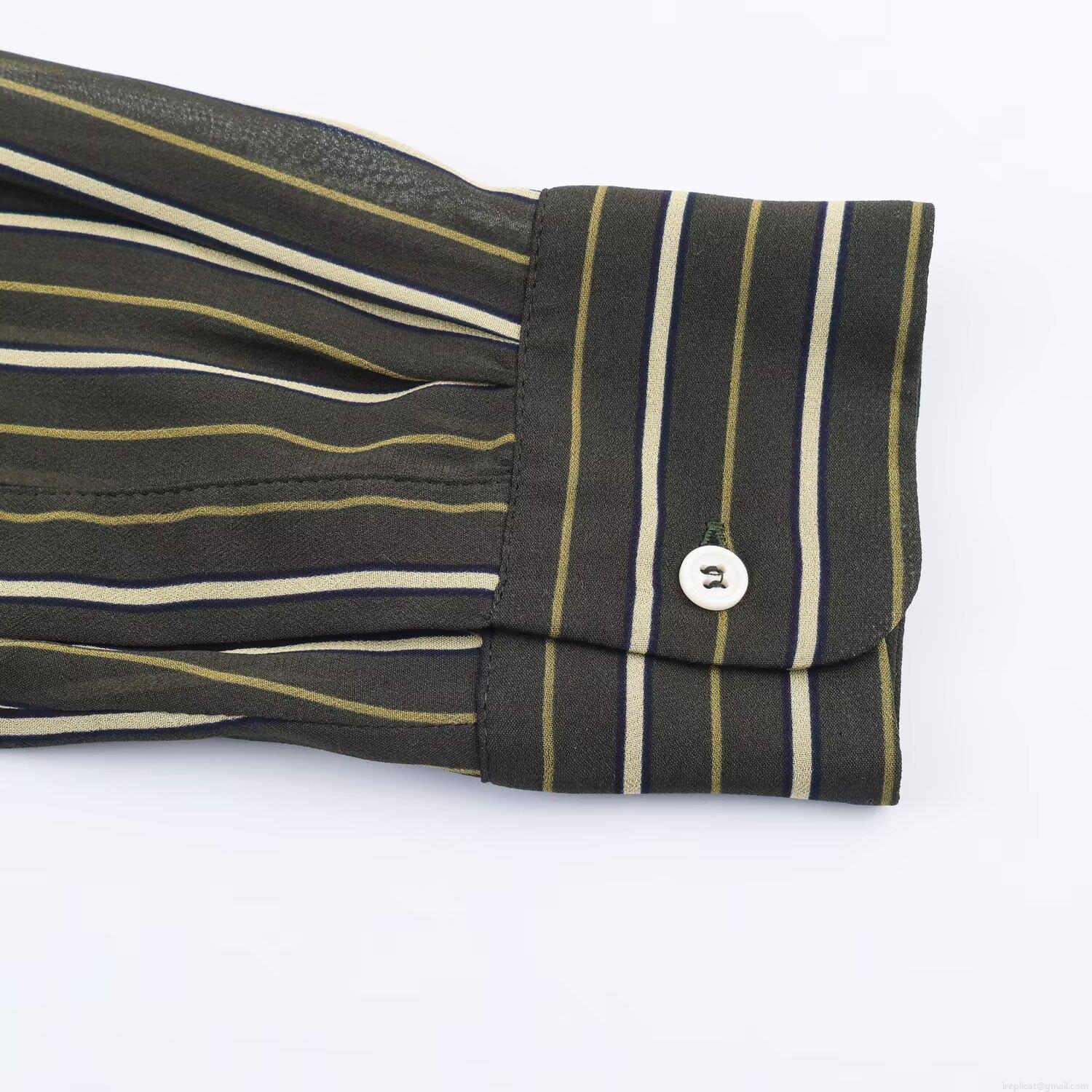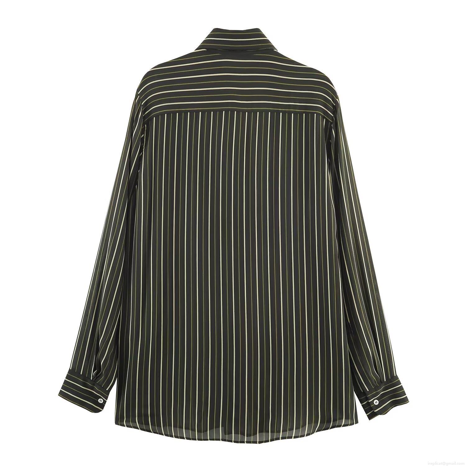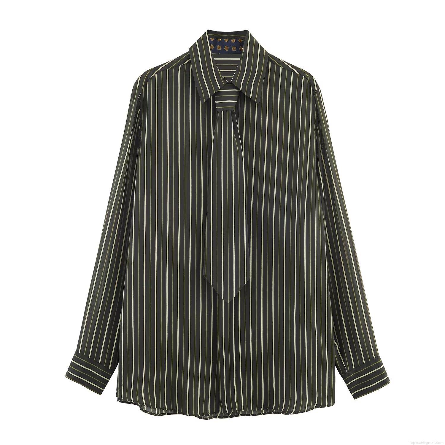 • Women's Elegant Striped Long Sleeve Shirt With Matching Tie Polyester Lapel Loose Fit Button Down Blouse Office Daily Wear Stylish Comfort Top