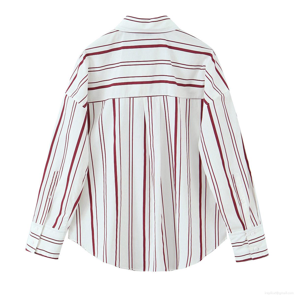 • Women's Elegant Striped Poplin Shirt Long Sleeve Button Down Blouse Polyester Casual Office Tops For Women