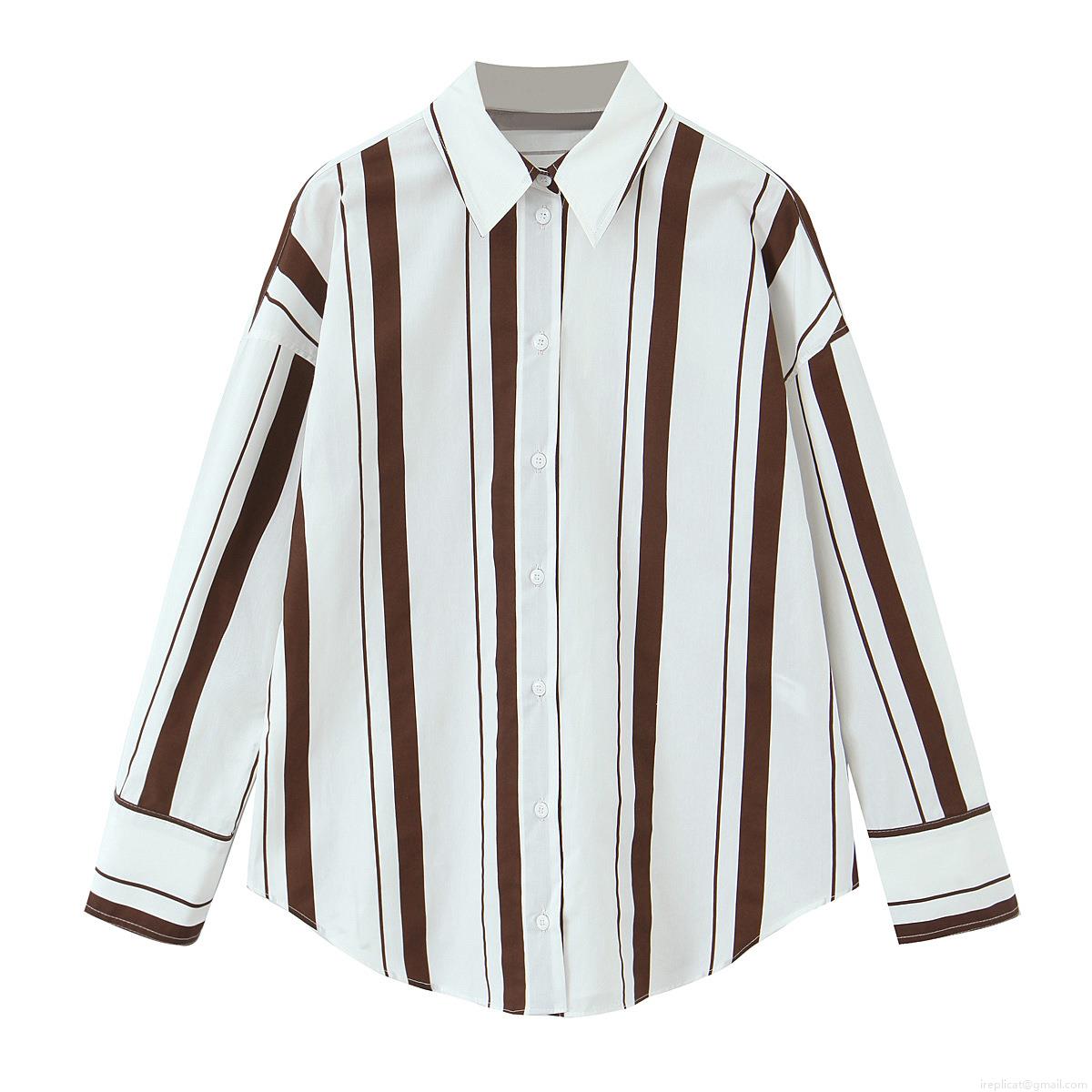 Women's Elegant Striped Poplin Shirt Long Sleeve Button Down Blouse Polyester Casual Office Tops For Women