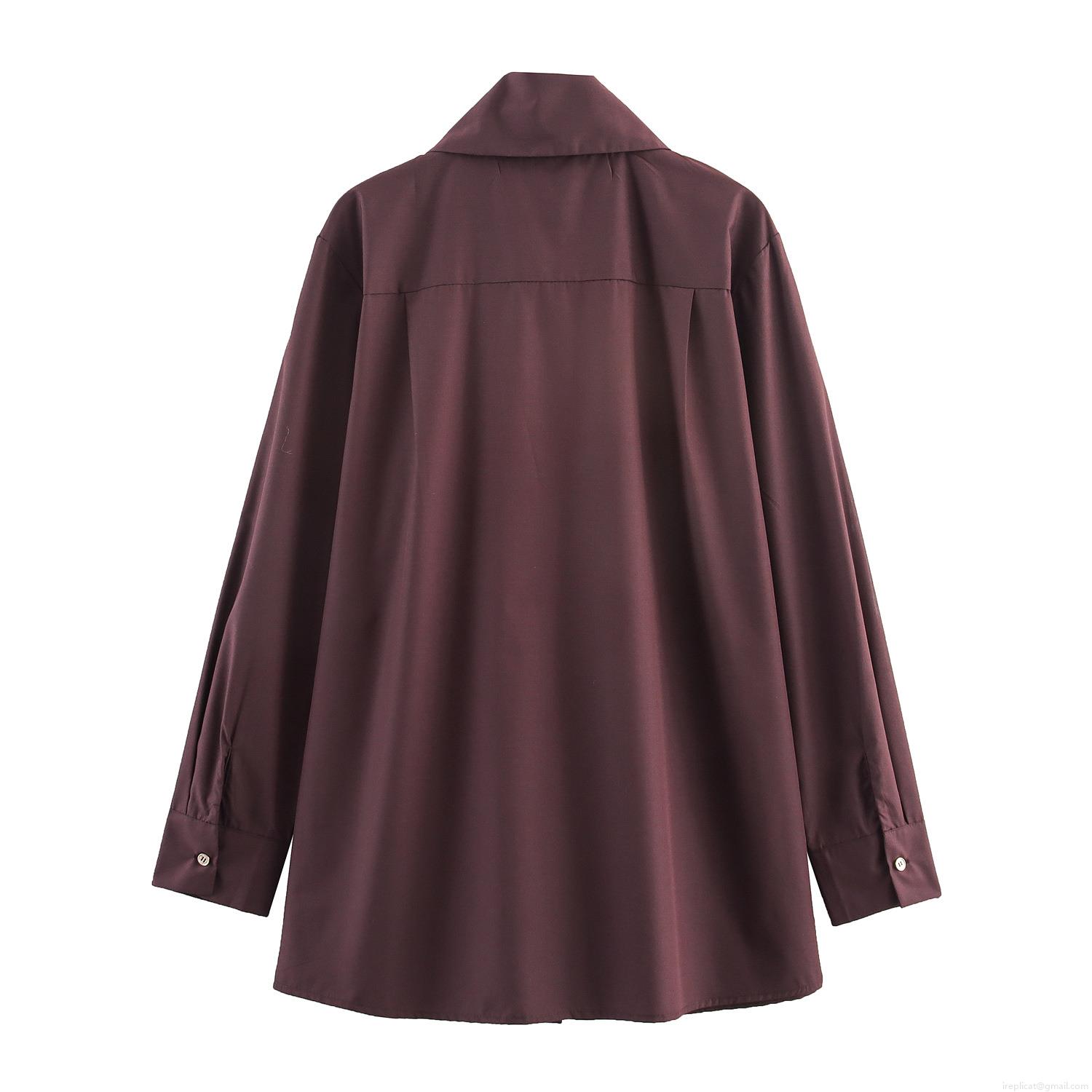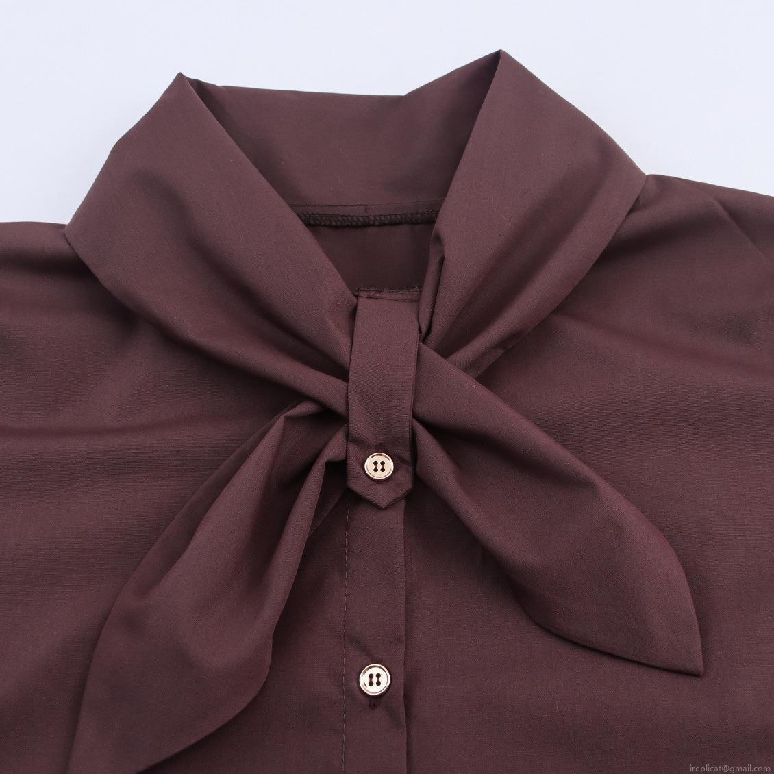 • Women's Elegant Tie Neck Blouse Long Sleeve Single Breasted Shirt Loose Polyester Office Commuter Top With Gold Buttons British Style