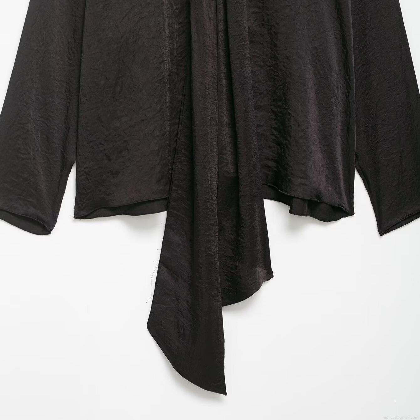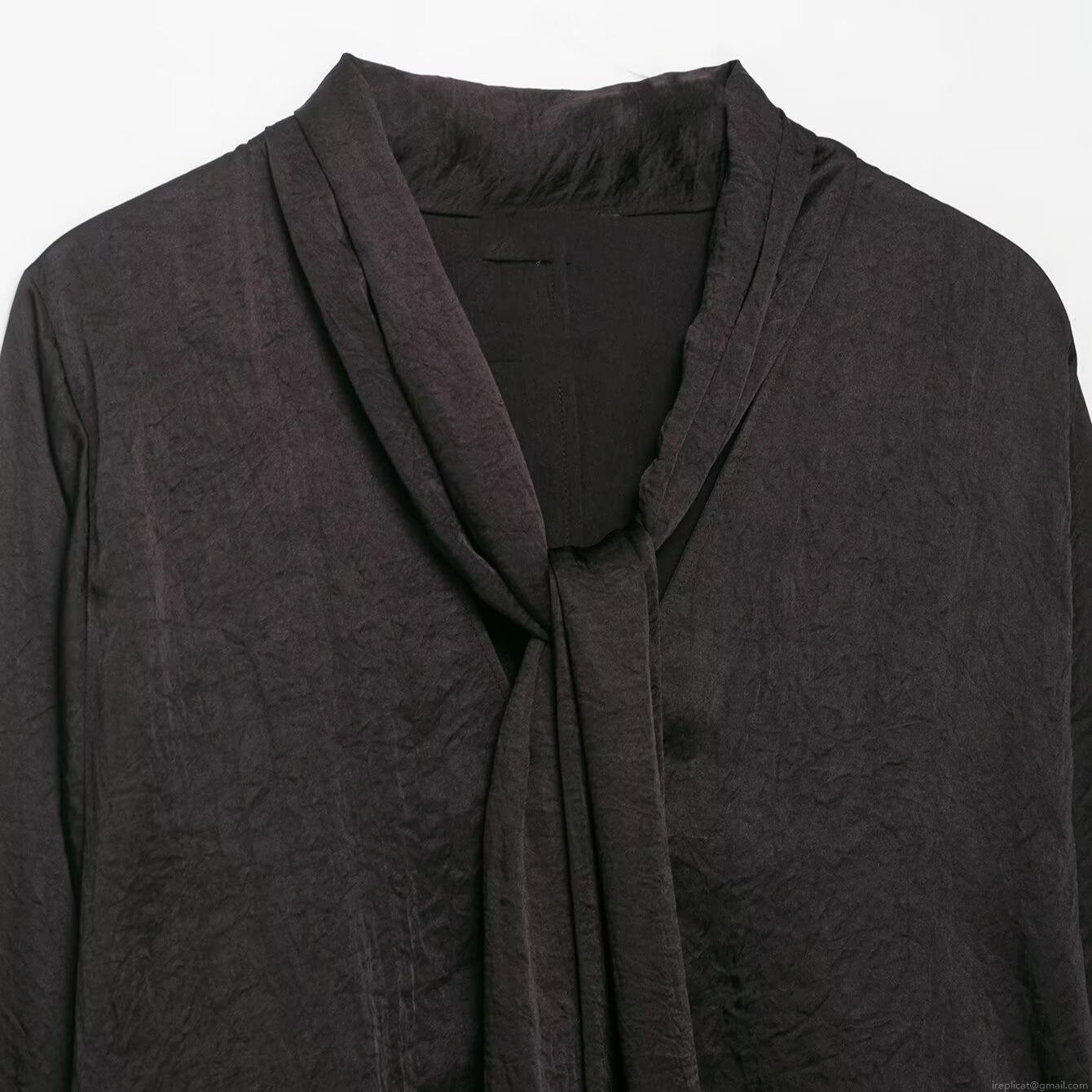• Women's Elegant Tie Neck Long Sleeve Blouse Casual Crinkled Texture Polyester Shirt Top For Office Dating Party Solid Color Minimalist Aesthetic Loose Fit Tunic