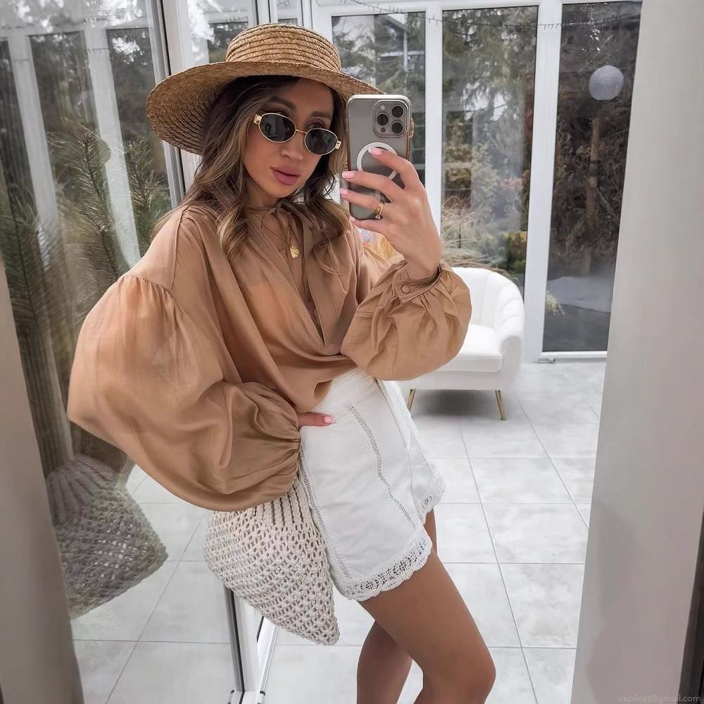 Solid Color, V-neck, Single-breasted, Lantern Sleeves