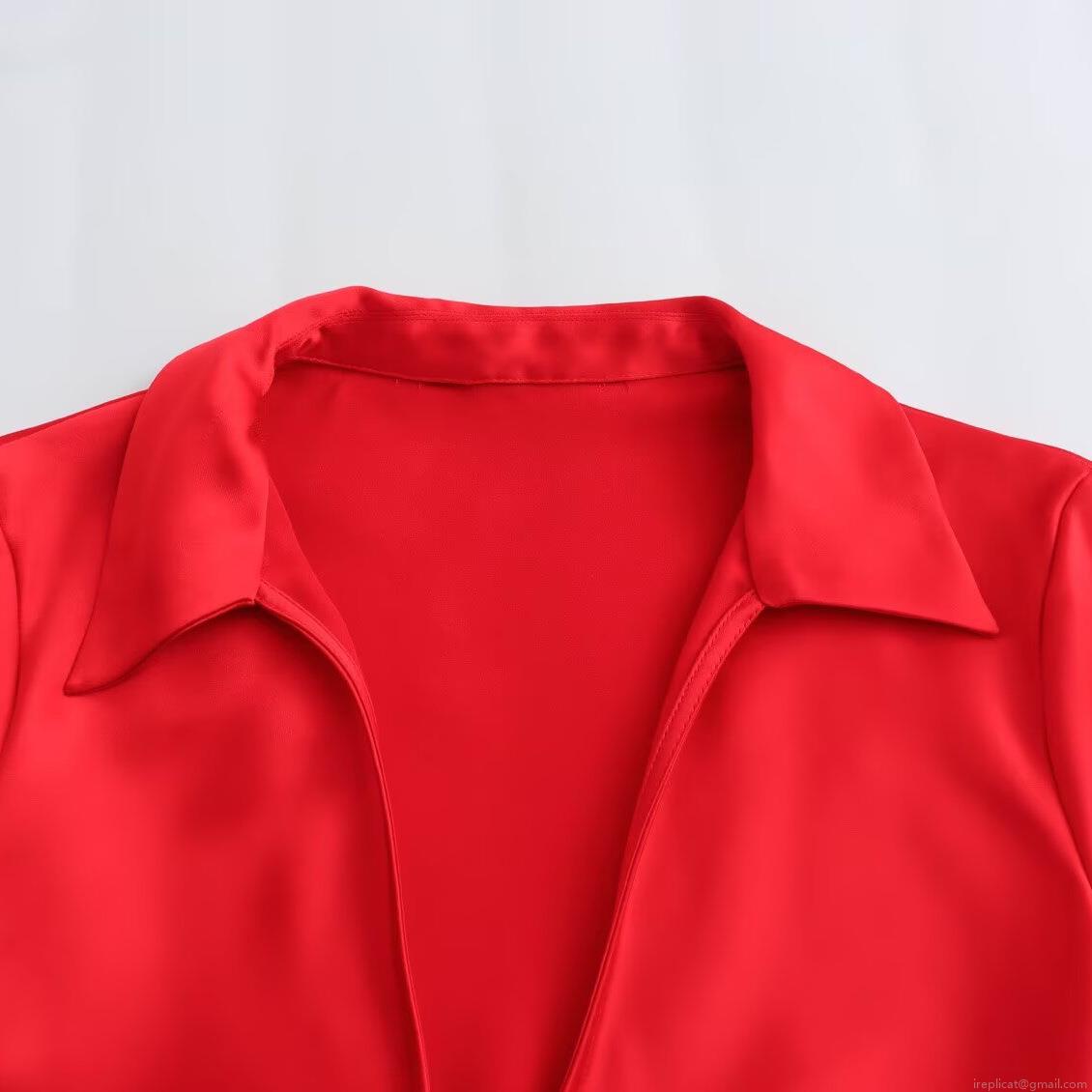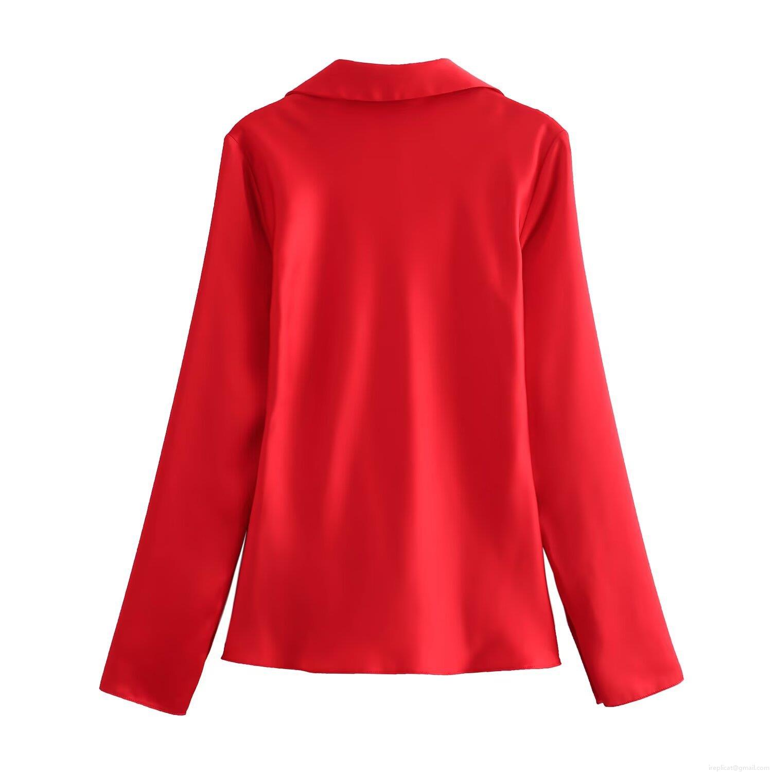 • Women's Elegant V Neck Satin Blouse Fashion Tie Front Long Sleeve Lapel Shirt For Daily Party Dating Solid Color Leopard Print Polyester Spandex Tops