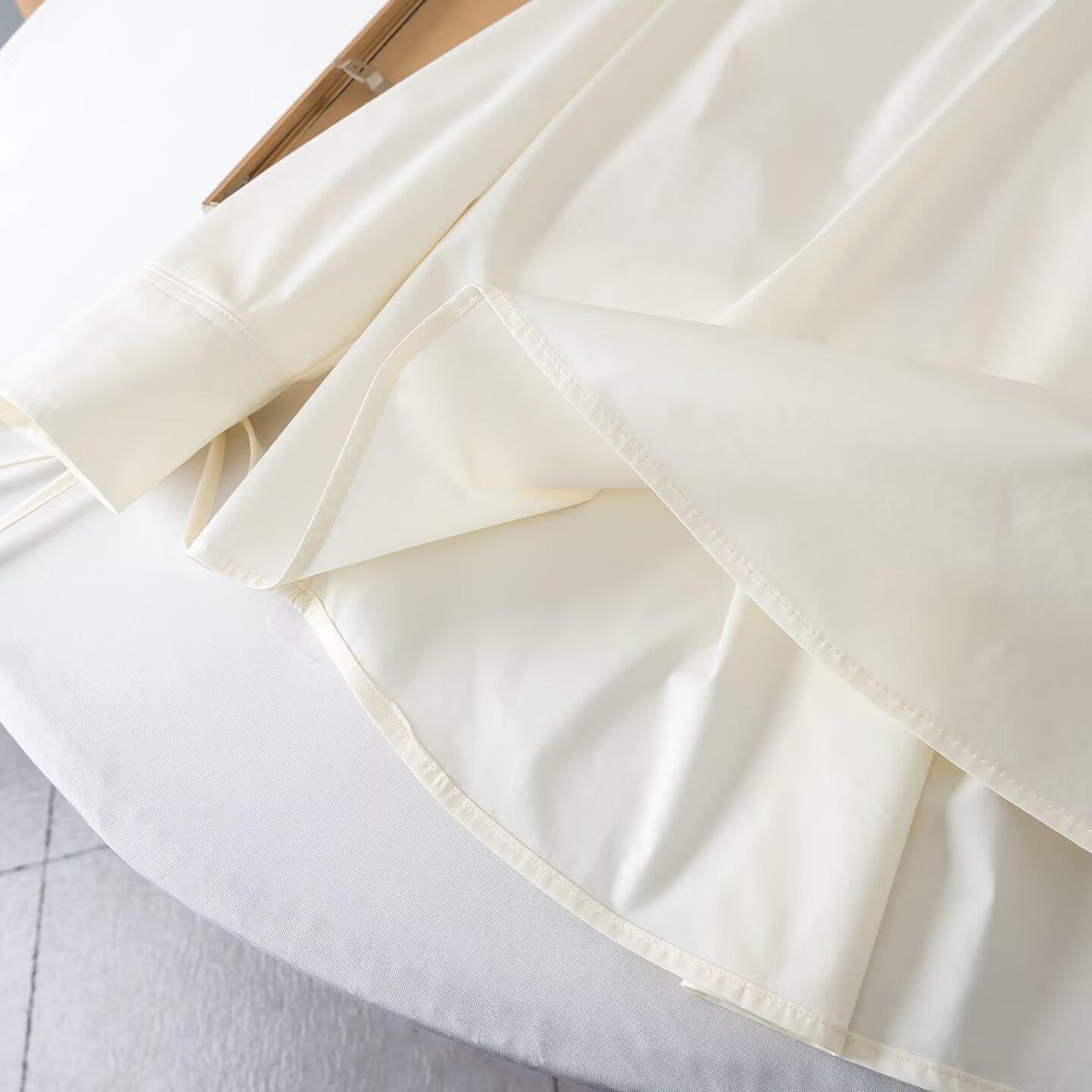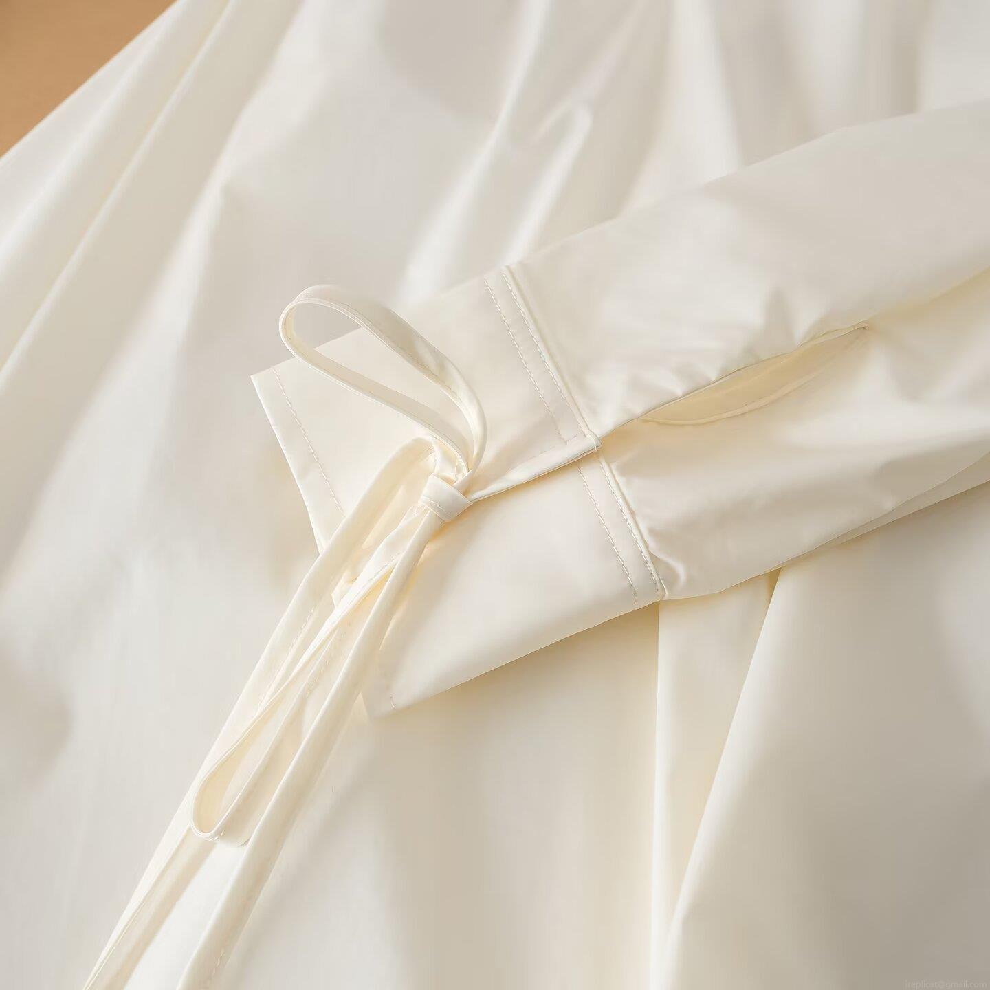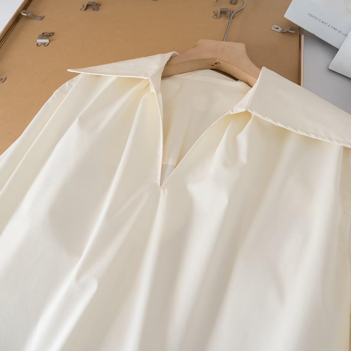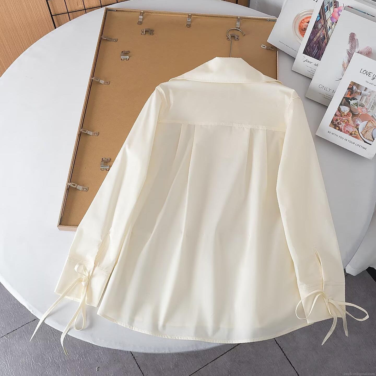 • Women's Elegant V-Neck Long Sleeve Blouse Casual Loose Shirt With Large Lapel And Cuff Tie-Up Bow Fashion Solid Color Polyester Spandex Tops For Office Daily Wear