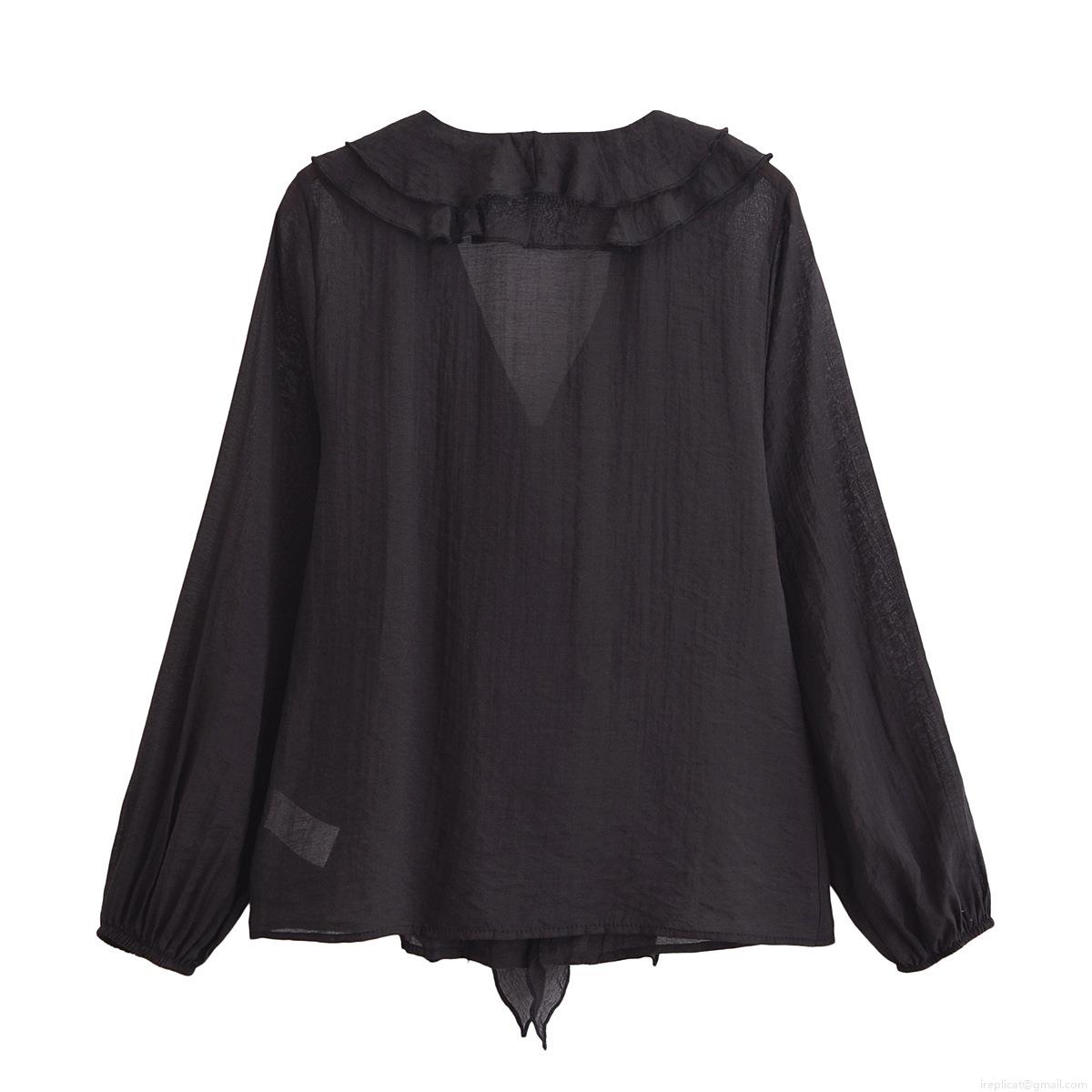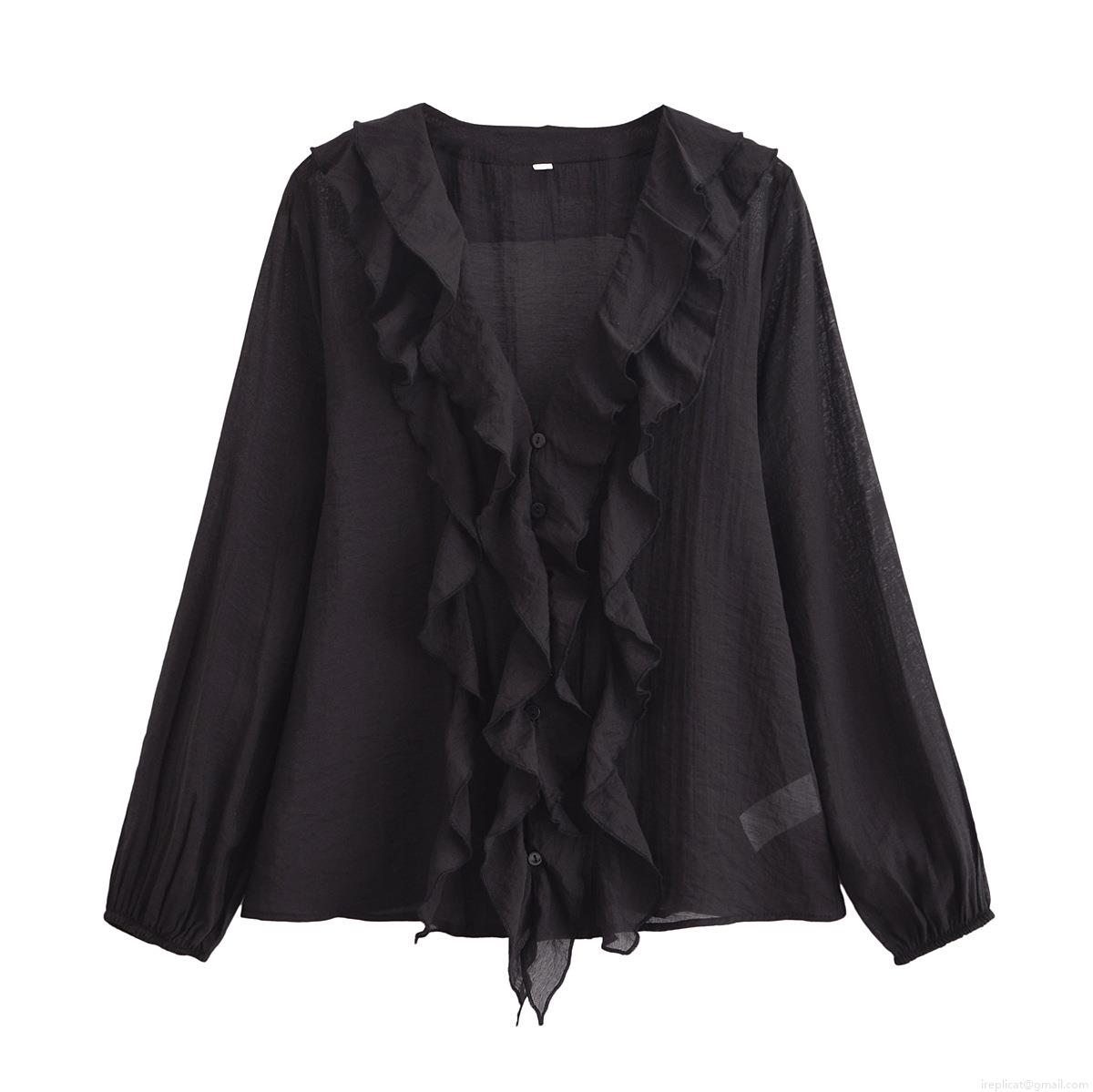 • Women's Elegant V-Neck Ruffle Blouse Long Sleeve Button Down Shirt Chic Layered Ruffled Tops For Dating Party Ladies Solid Color Polyester Blouse