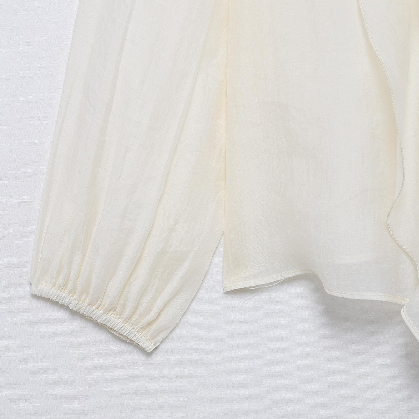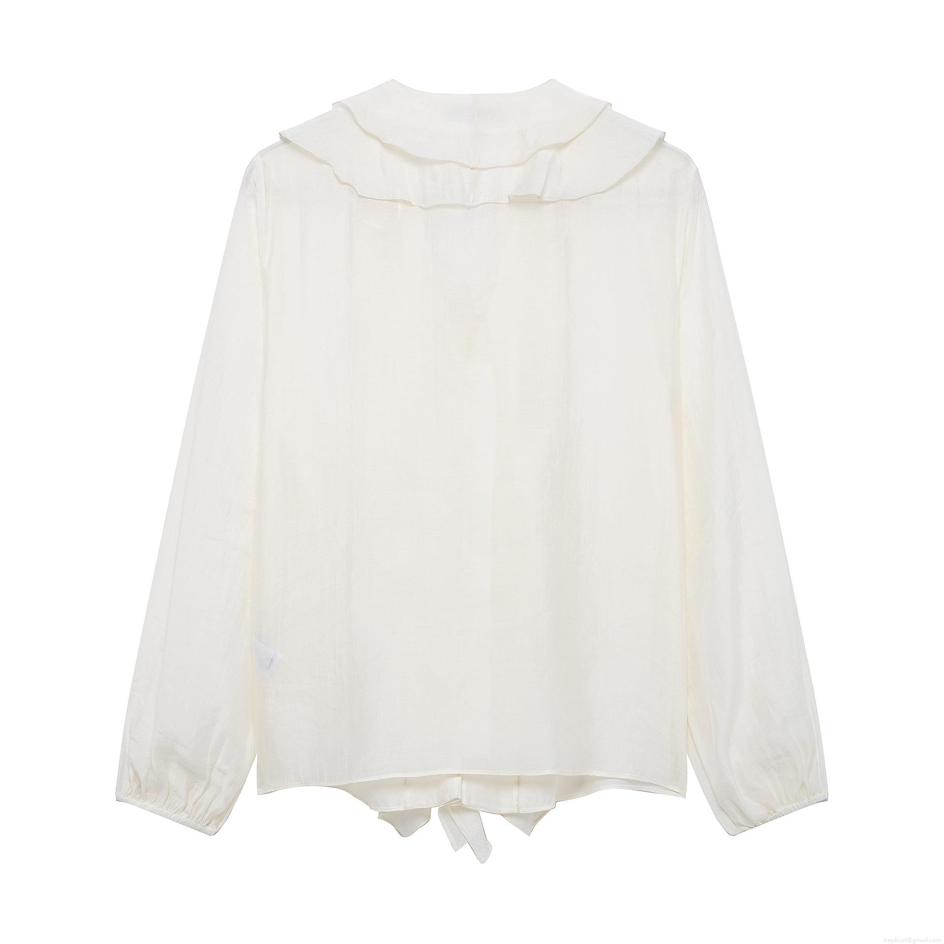 • Women's Elegant V-Neck Ruffle Chiffon Blouse Long Lantern Sleeve Layered Decorated Solid Color Casual Sweet Tops For Lady Spring Autumn