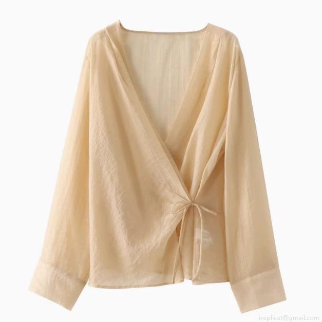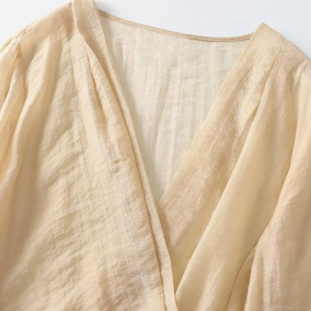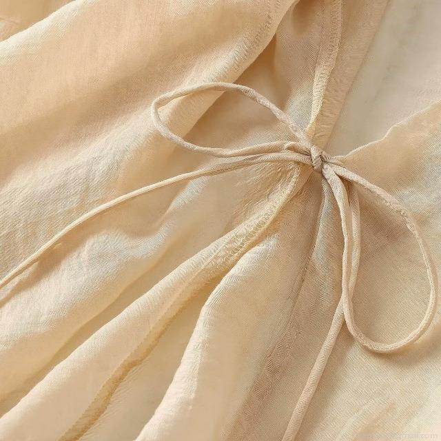 • Women's Elegant V-Neck Wrap Shirt Semi-Transparent Crinkle Tencel Blouse Long Sleeve Tie Waist Tops For Party Office Casual Lady Blouses