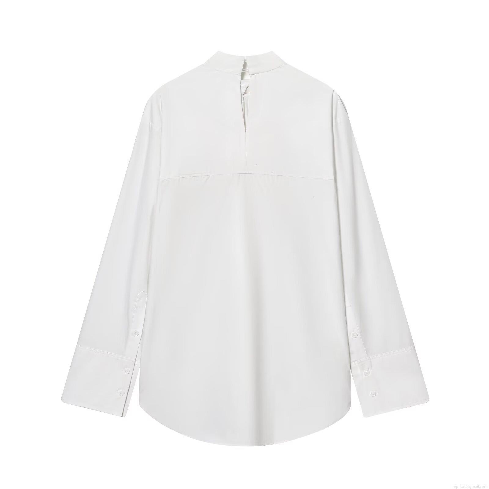 • Women's Elegant White Poplin Blouse Oversized Bow Tie Long Sleeve Shirt Fashion Casual Office Wear Sweet Style Top Lady Clothing