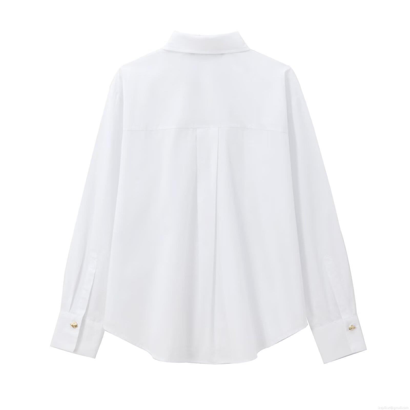• Women's Elegant White Poplin Shirt Long Sleeve Blouse With Irregular Gold Metal Buttons Casual Regular Fit Top For Office Daily Wear Streetwear