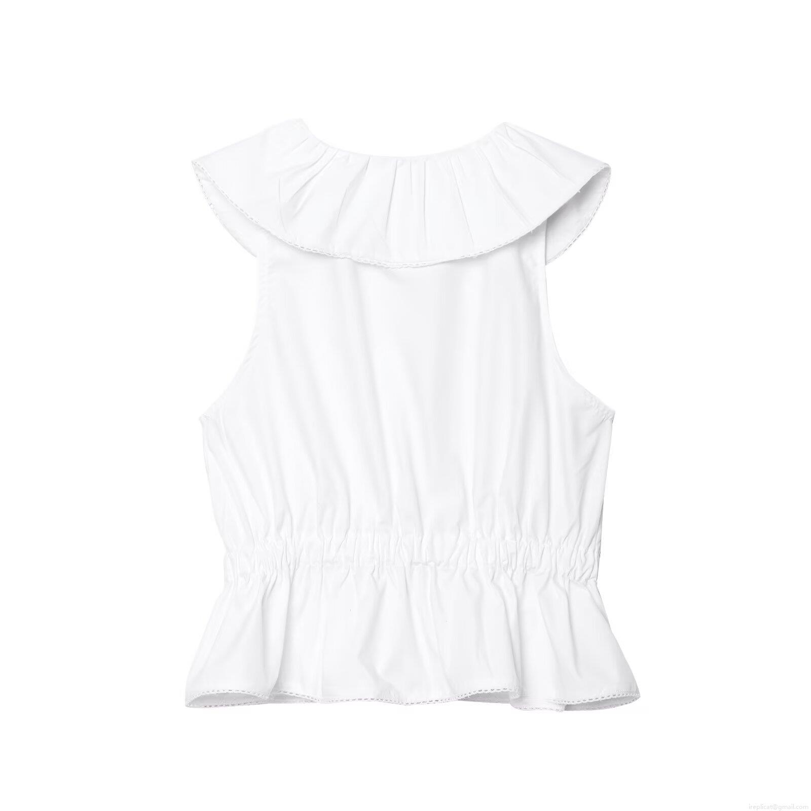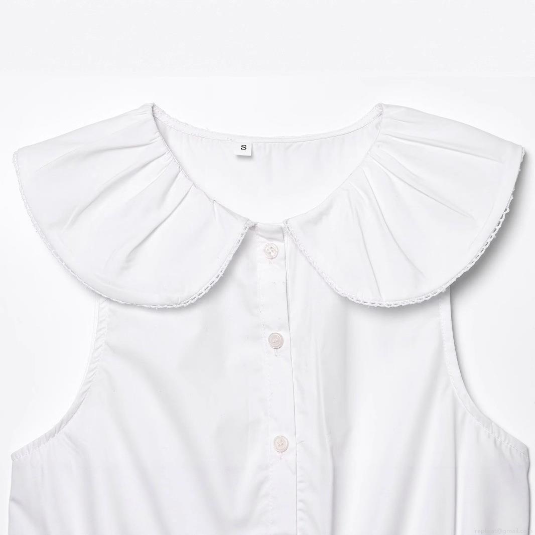 • Women's Elegant White Sleeveless Blouse Featuring Oversized Ruffle Peter Pan Collar Minimalist Solid Color Button Up Peplum Top Sweet Summer Shirt