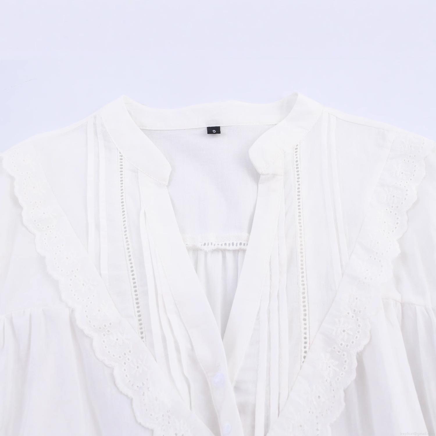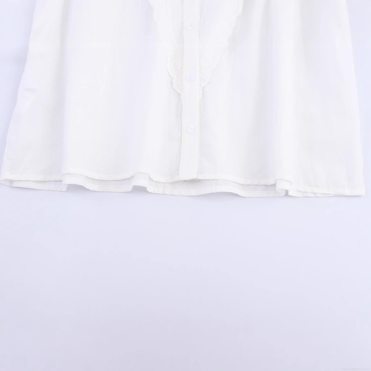 • Women's Elegant White V Neck Blouse 85% Cotton Lace Trim Ruffle Lantern Short Sleeve Button Down Casual Top Shirt for Women