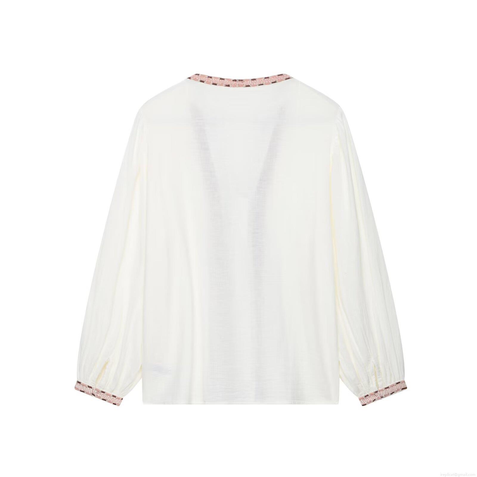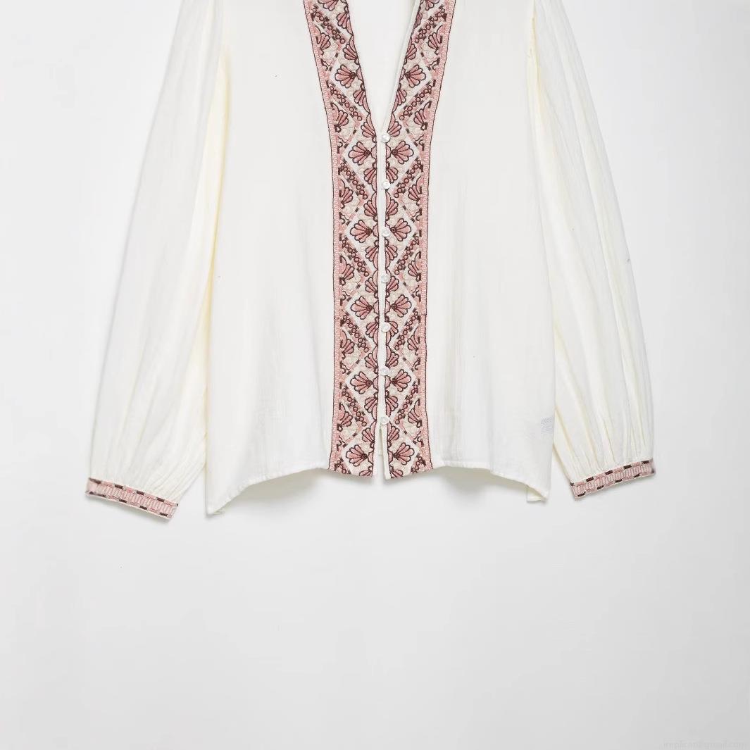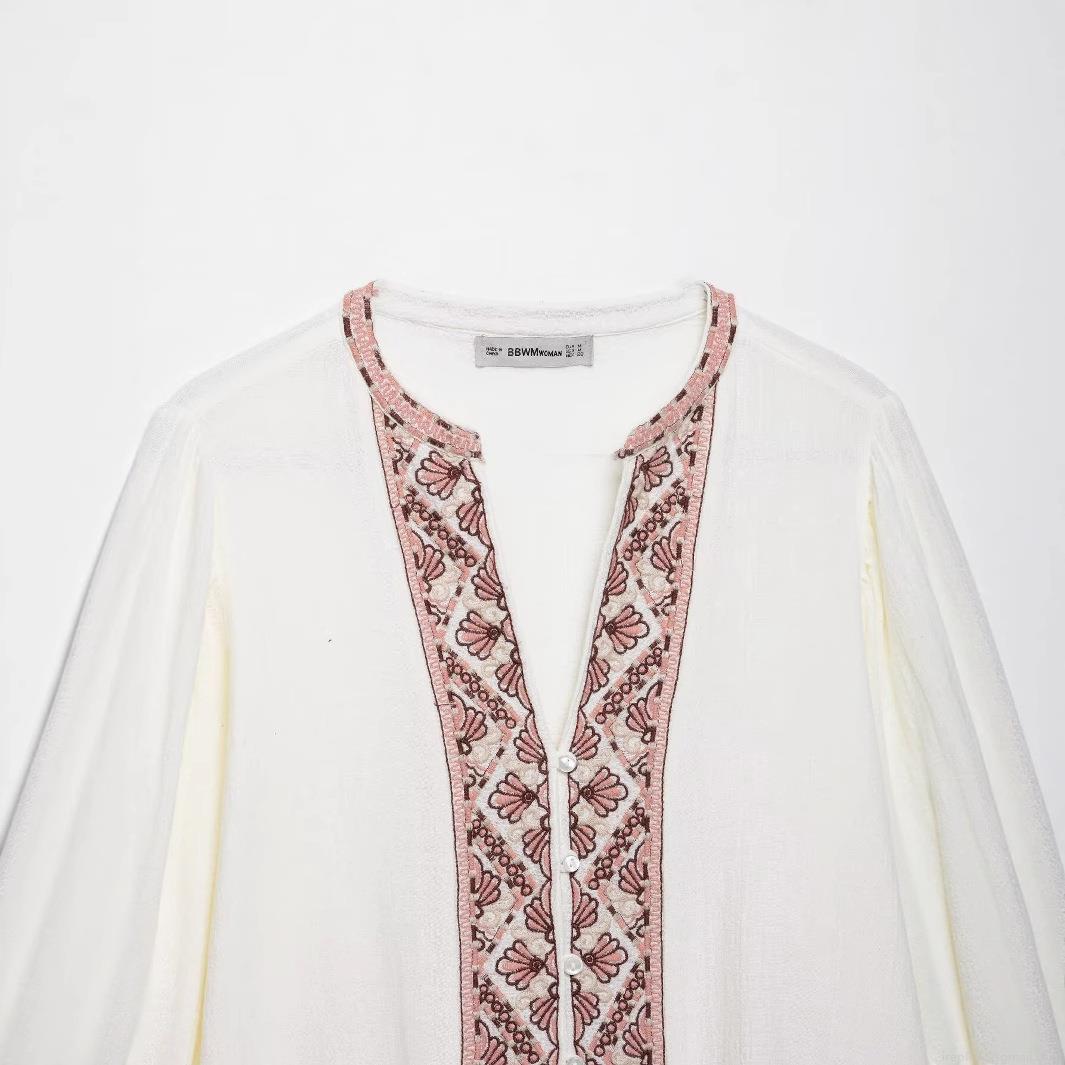 • Women's Embroidered White Blouse 100% Polyester Long Sleeve V Neck Shirt Vintage Ethnic Geometric Floral Embroidery Tops Casual Daily Spring Autumn