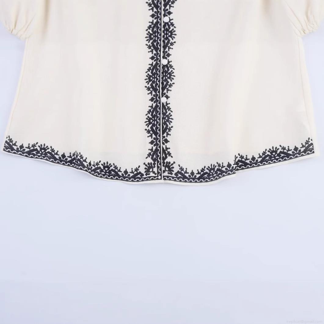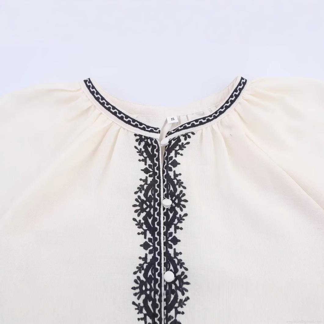 • Women's Ethnic Embroidery Long Sleeve Blouse Off-White Single Breasted French Style Shirt Polyester Linen Blend Chic Elegant Lady Tops