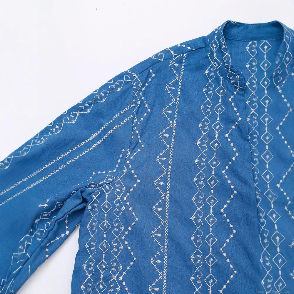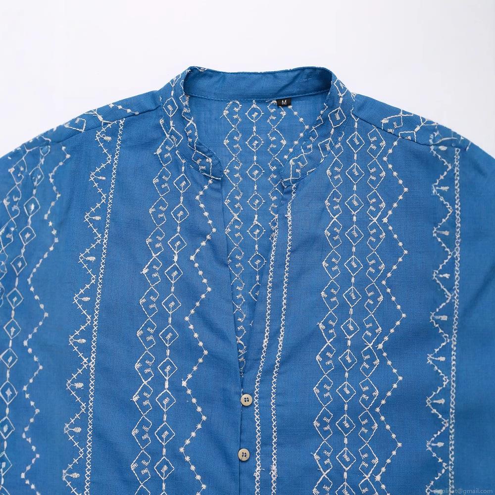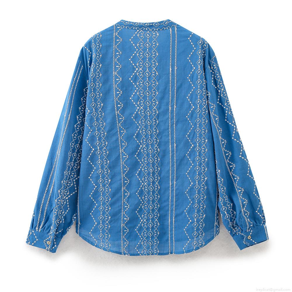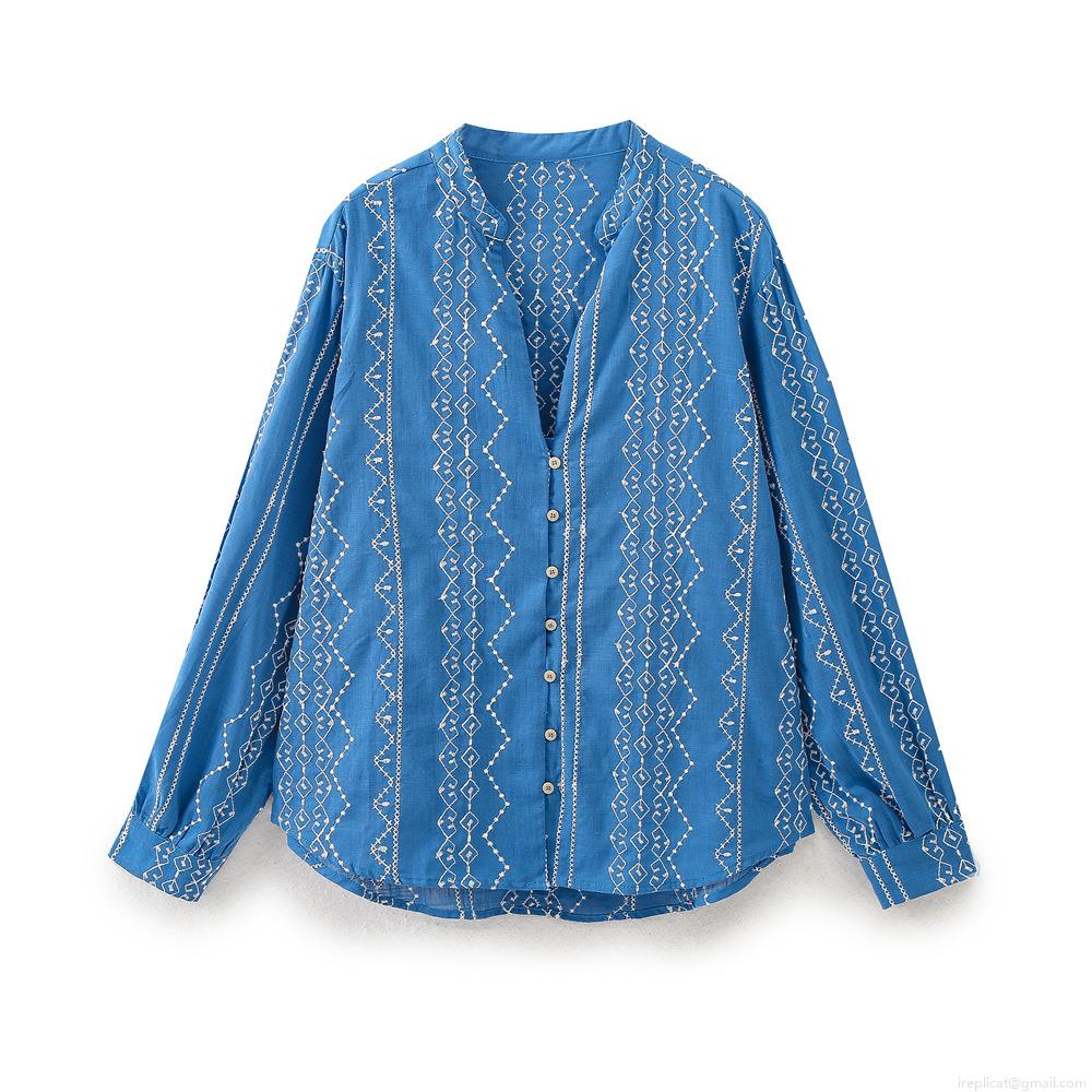 • Women's Ethnic Embroidery V-Neck Long Sleeve Shirt 85% Cotton 15% Polyester Geometric Pattern Button Down Blouse Casual Spring Autumn Loose Top