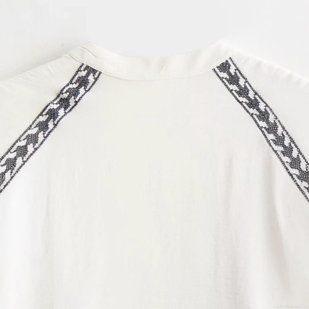 Women's Ethnic Geometric Embroidered Blouse 100% Polyester Lantern Long Sleeve V-Neck Button Up Shirt Boho Style Cream White Tops for Ladies