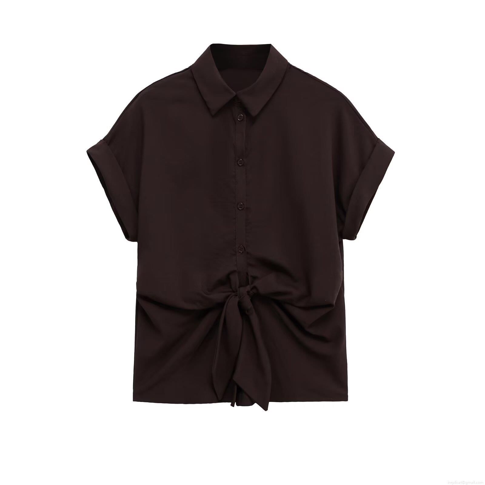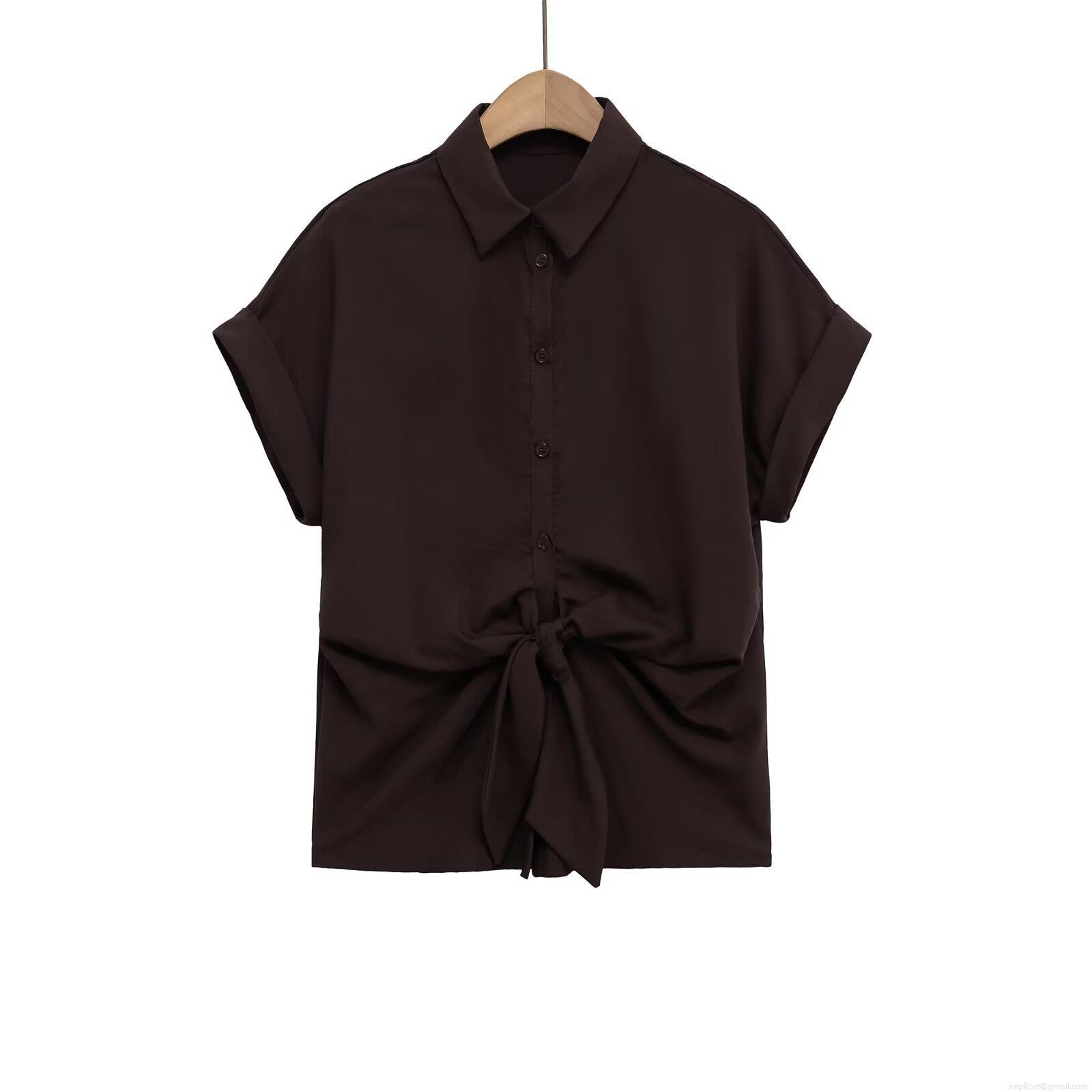 • Women's European Style Lapel Long Sleeve Blouse With Knot Front Decoration Solid Color Polyester Casual Shirt Top For Daily Wear Streetwear
