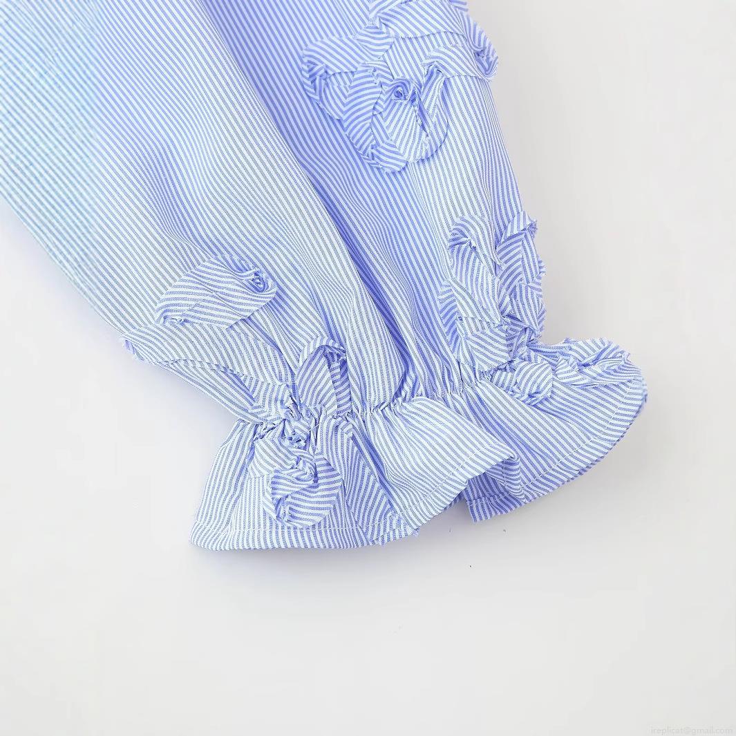 Women's European Style V-Neck Lantern Sleeve Striped Shirt With 3D Floral Applique Ruffle Cuff Long Sleeve Polyester Casual Top
