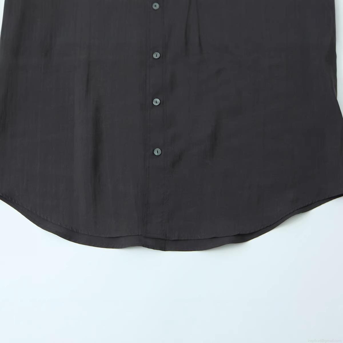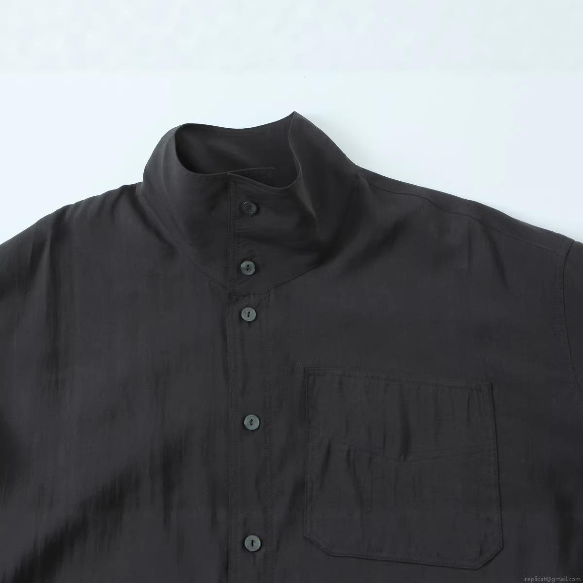 • Women's Fashion Beaded Solid Color Long Sleeve Button Down Shirt Polyester Casual Stand Collar Blouse with Pocket Curved Hem Office Lady Poplin Top