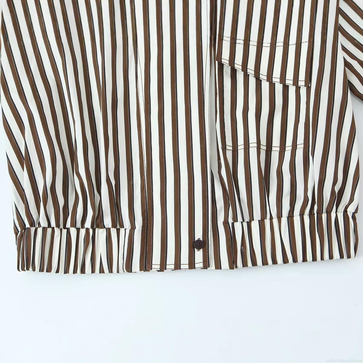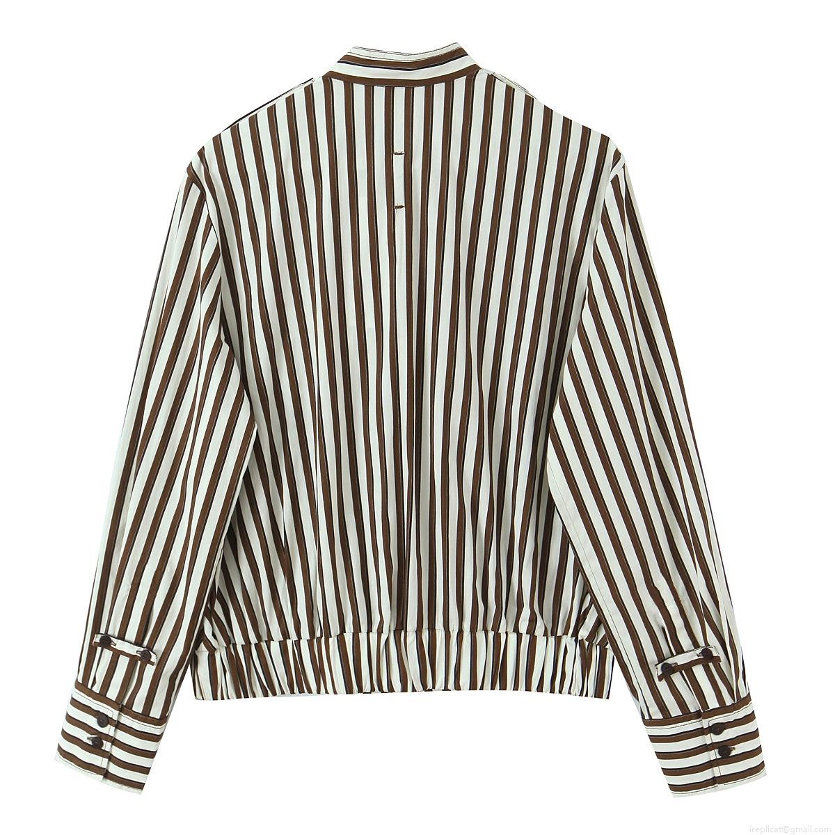 Vertical Stripes, Stand-up Collar Design, Elastic Hem, Epaulettes