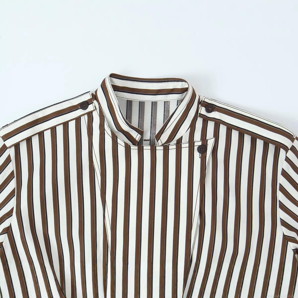 • Women's Fashion Casual Long Sleeve Striped Blouse Shirt Stand Collar Vertical Stripe Elastic Hem Polyester Blend Tops for Women Daily Wear