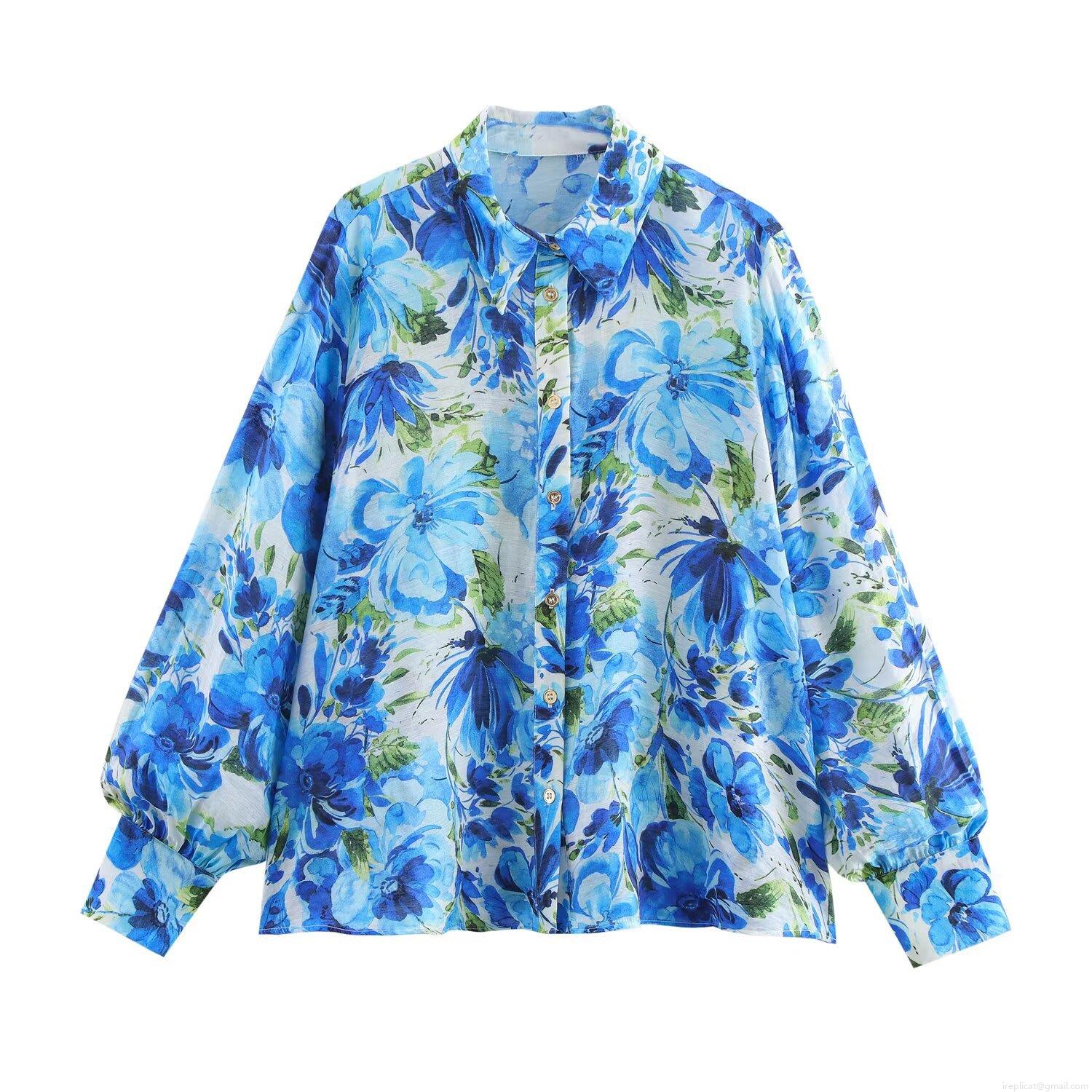• Women's Fashion Floral Print Long Sleeve Shirt European Style Lapel Button Up Blouse Casual Loose Lightweight Top For Spring Daily Wear