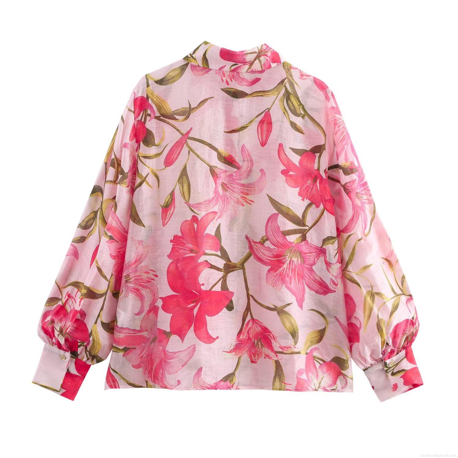 Floral, Printing, Button, Lantern Sleeves, Lily Flowers