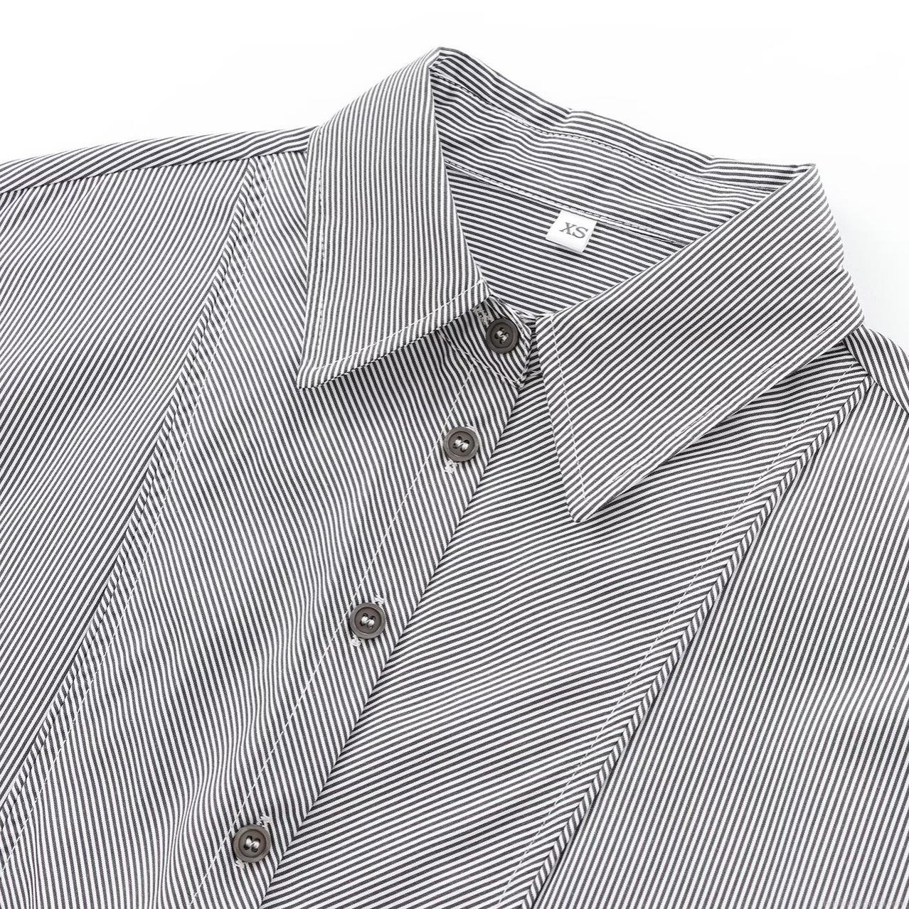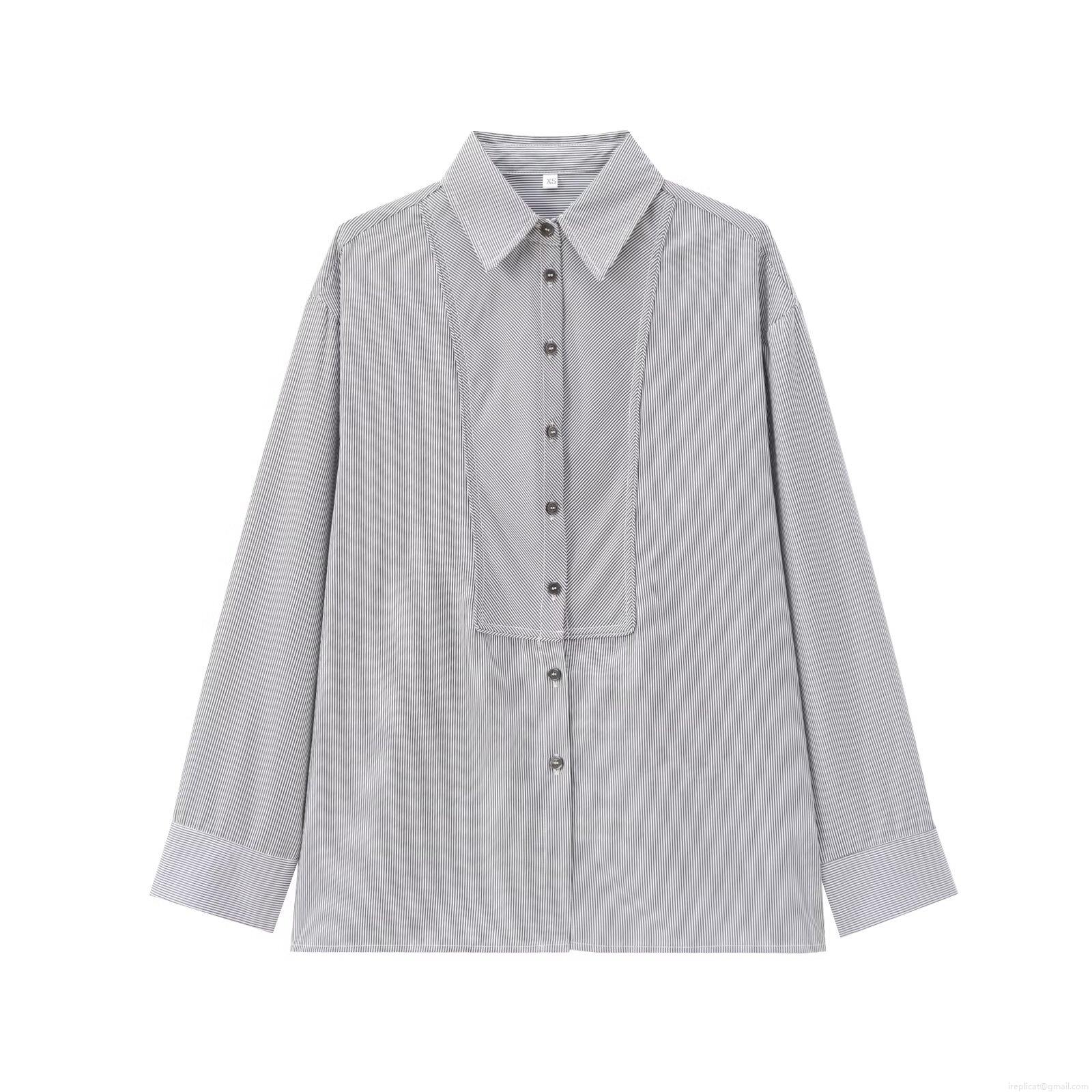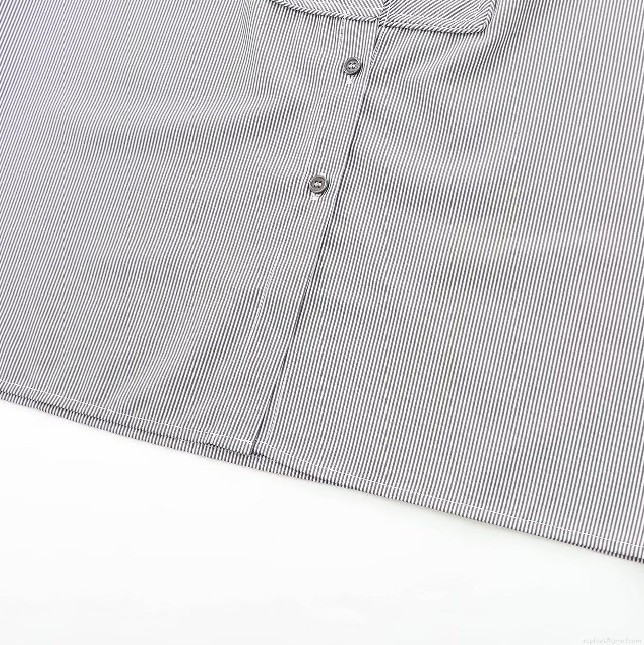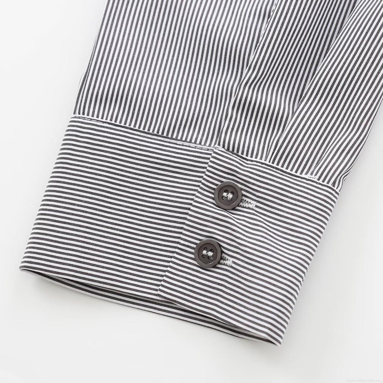 • Women's Fashion Gray Striped Shirt Long Sleeve Polo Collar Polyester Blend Casual Commute Blouse Button Down Splicing Striped Top Office Lady Autumn New Arrival