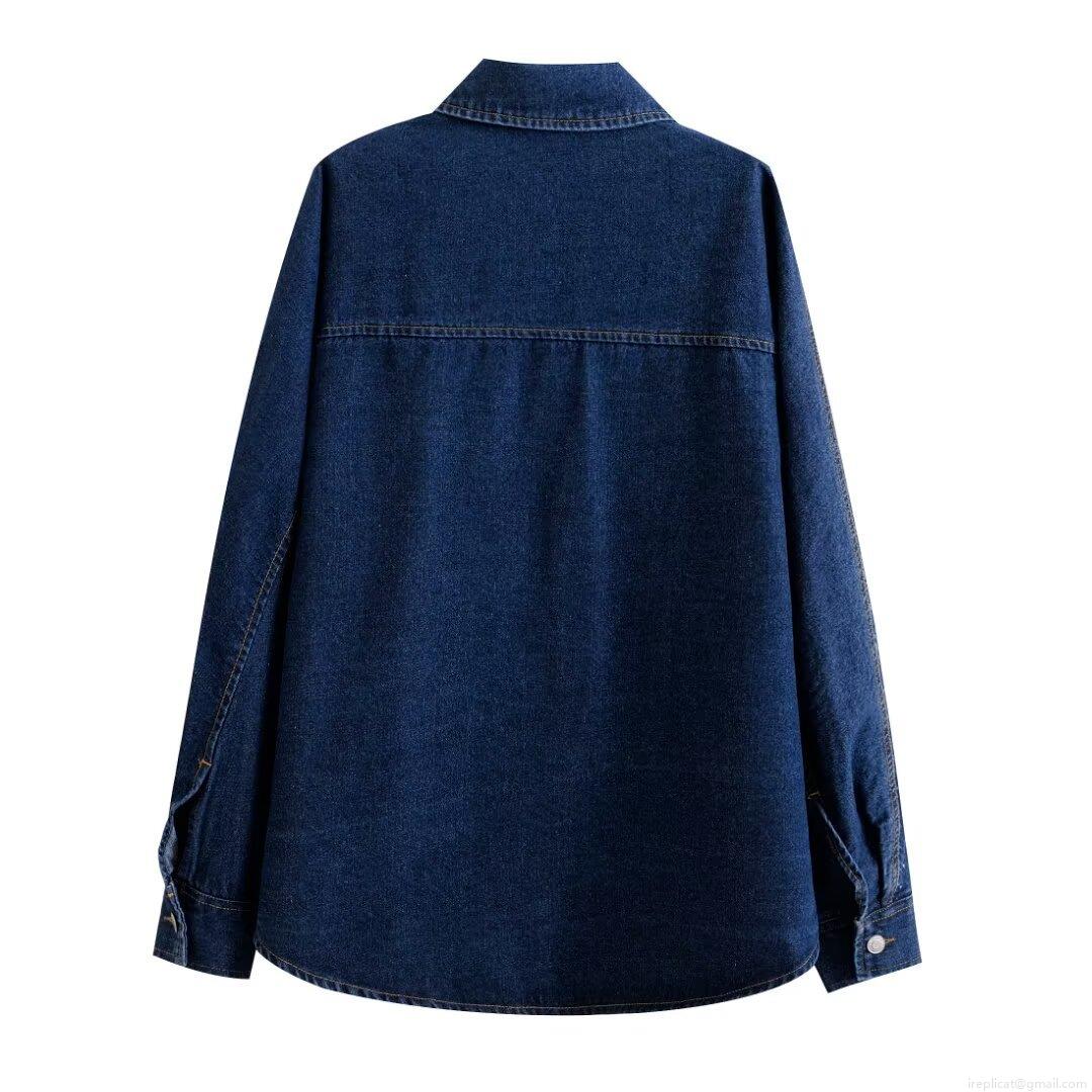 • Women's Fashion Long Sleeve Denim Shirt Lapel Single Breasted Jean Jacket Top With Pockets For Winter Casual Streetwear Ladies Clothing