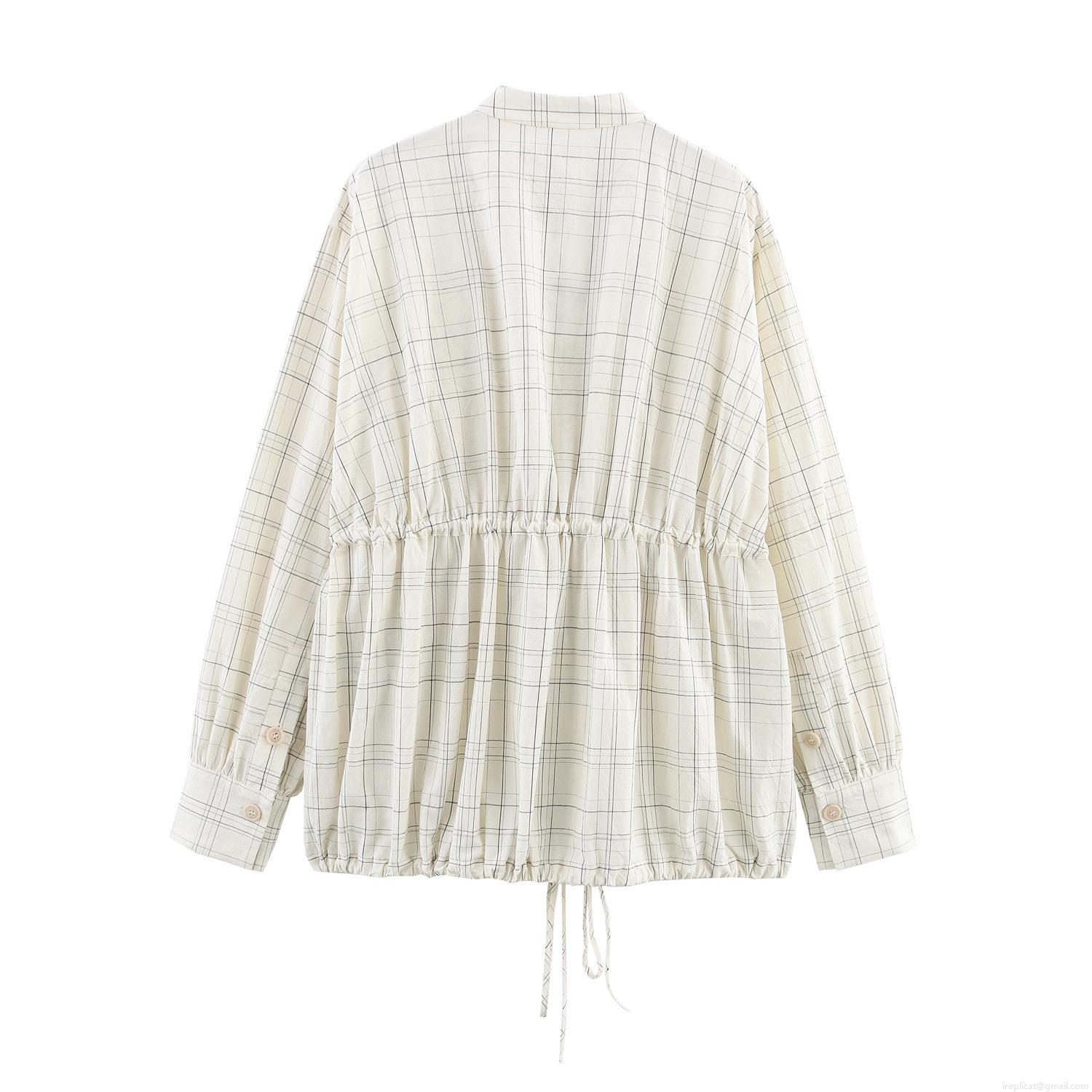 • Women's Fashion Plaid Long Sleeve Drawstring Blouse Casual Turn-down Collar Button Up Shirt Jacket Polyester Spandex Loose Fit Tops