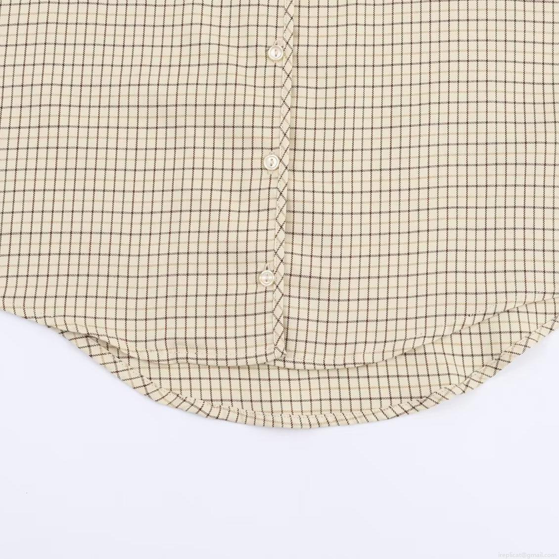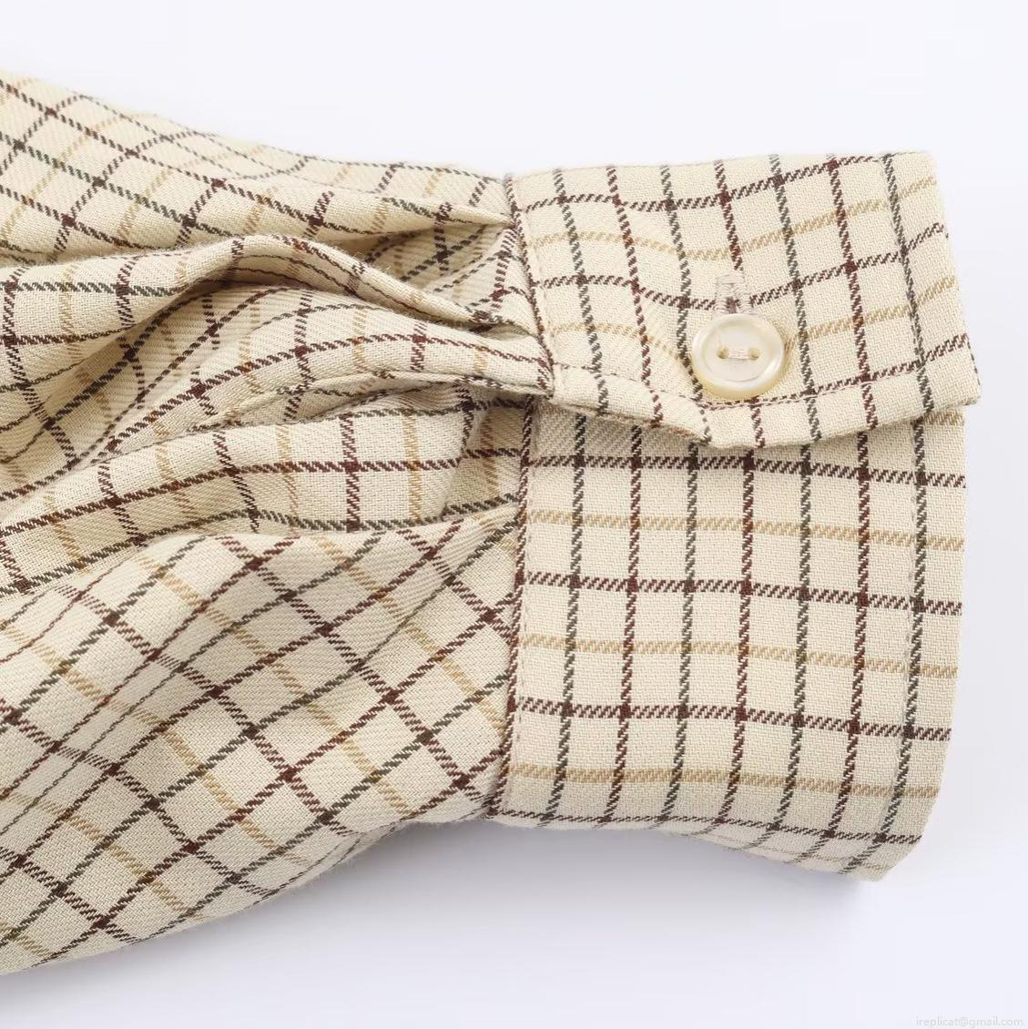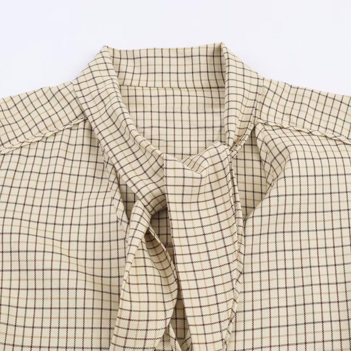 • Women's Fashion Plaid Tie-Neck Long Sleeve Blouse Polyester Spandex Casual Loose Fit Khaki Button Down Shirt For Daily Commuting